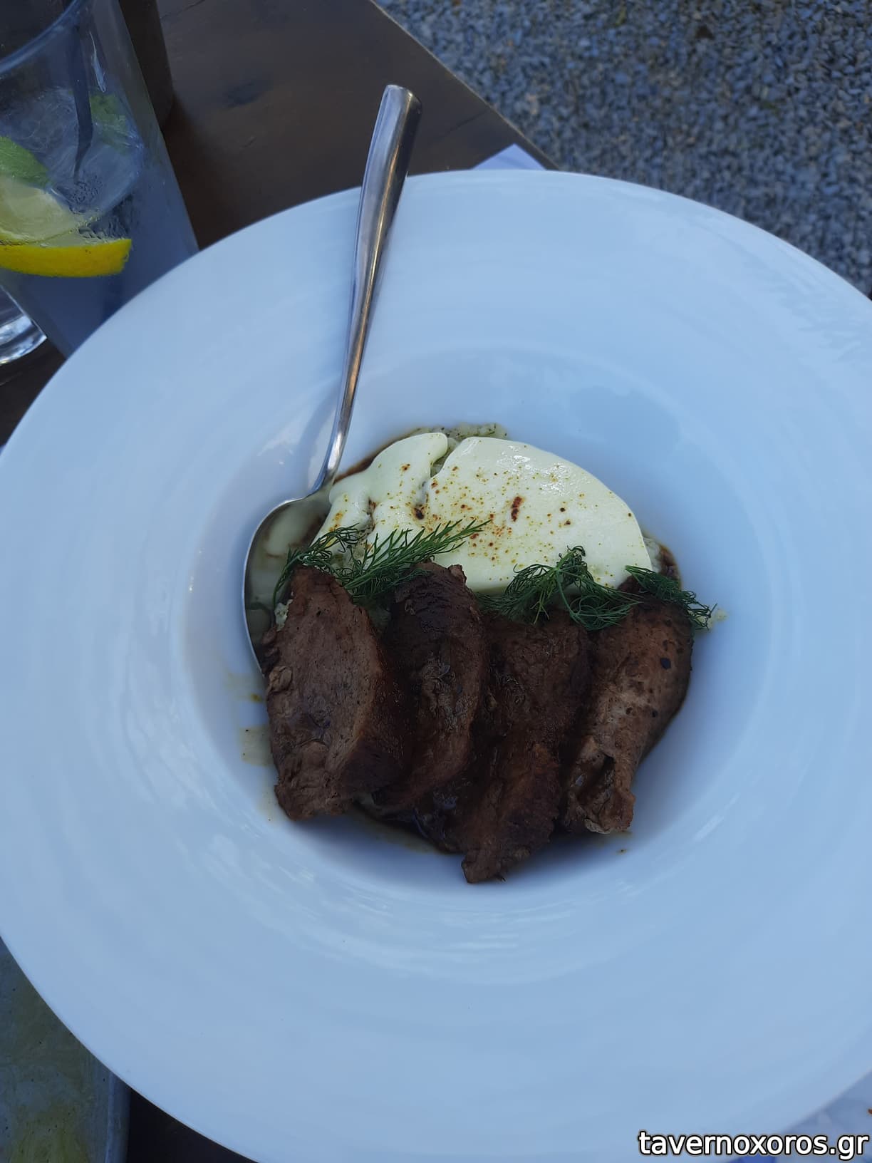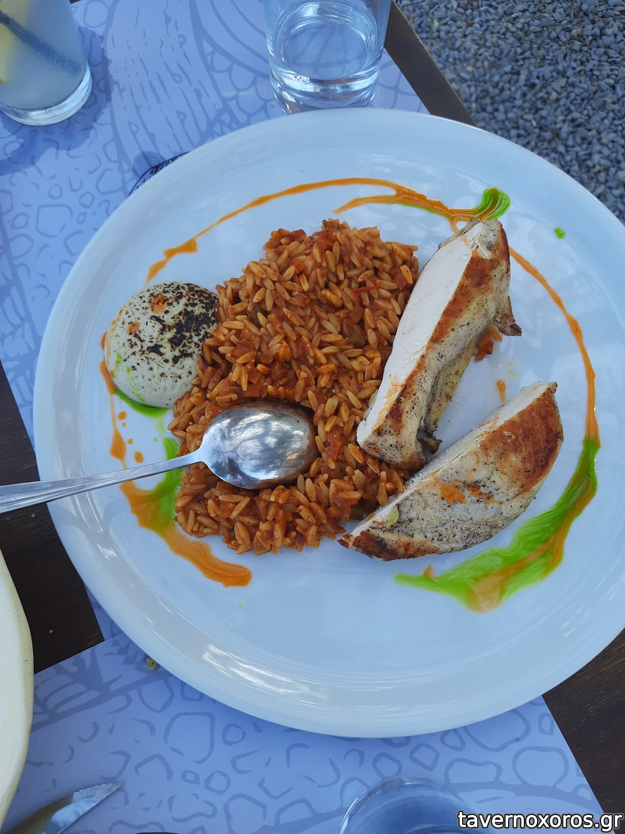 Η κουζίνα είναι μοντέρνα με παραδοσιακά λημνιά προϊόντα. Πήραμε μία "