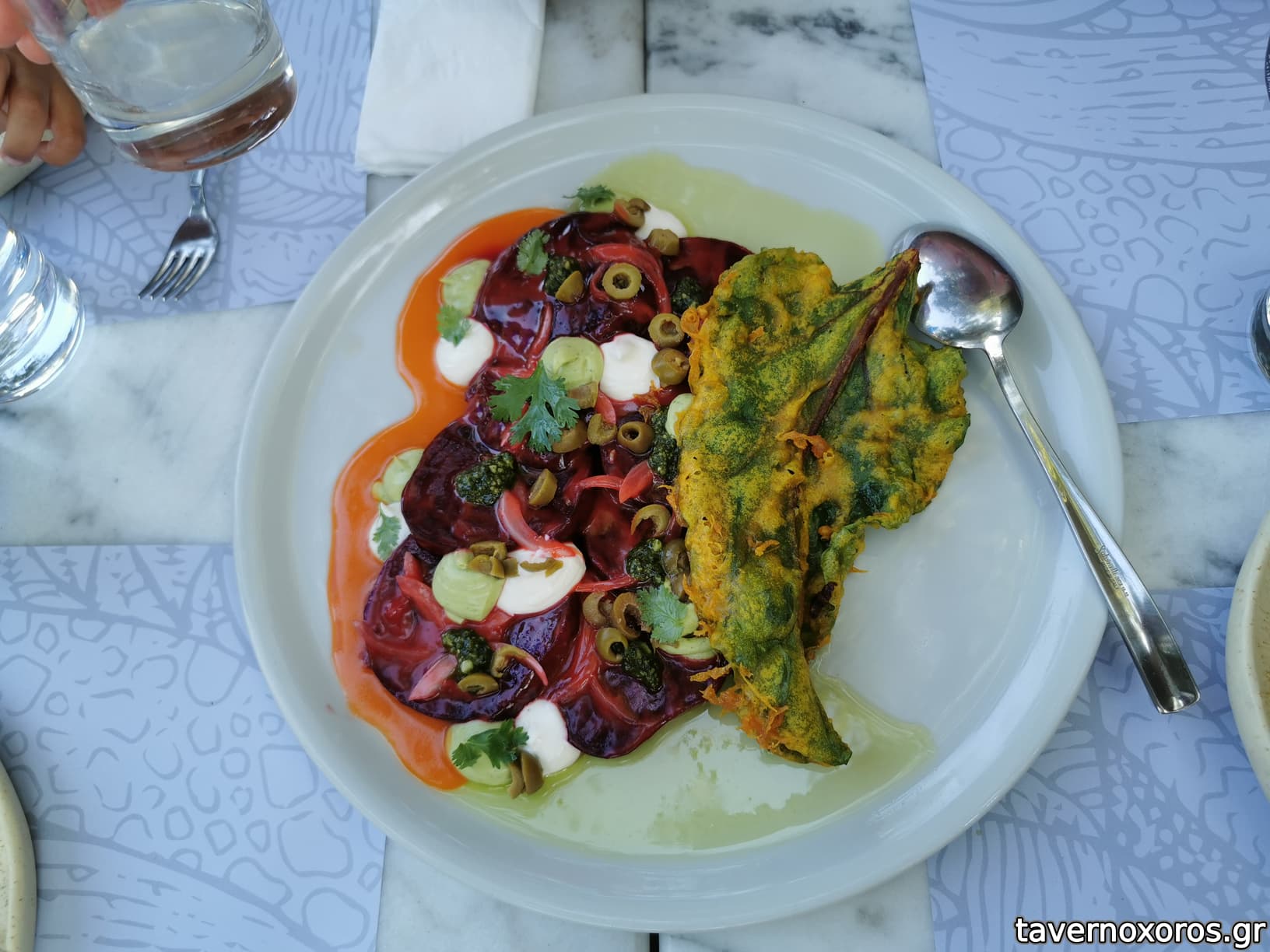 Αχνιστό κολοκυθάκι με βλίτα, γαριδάκι Λήμνου, ανθότυρο (καλό, πολύ δροσερό πιάτο)