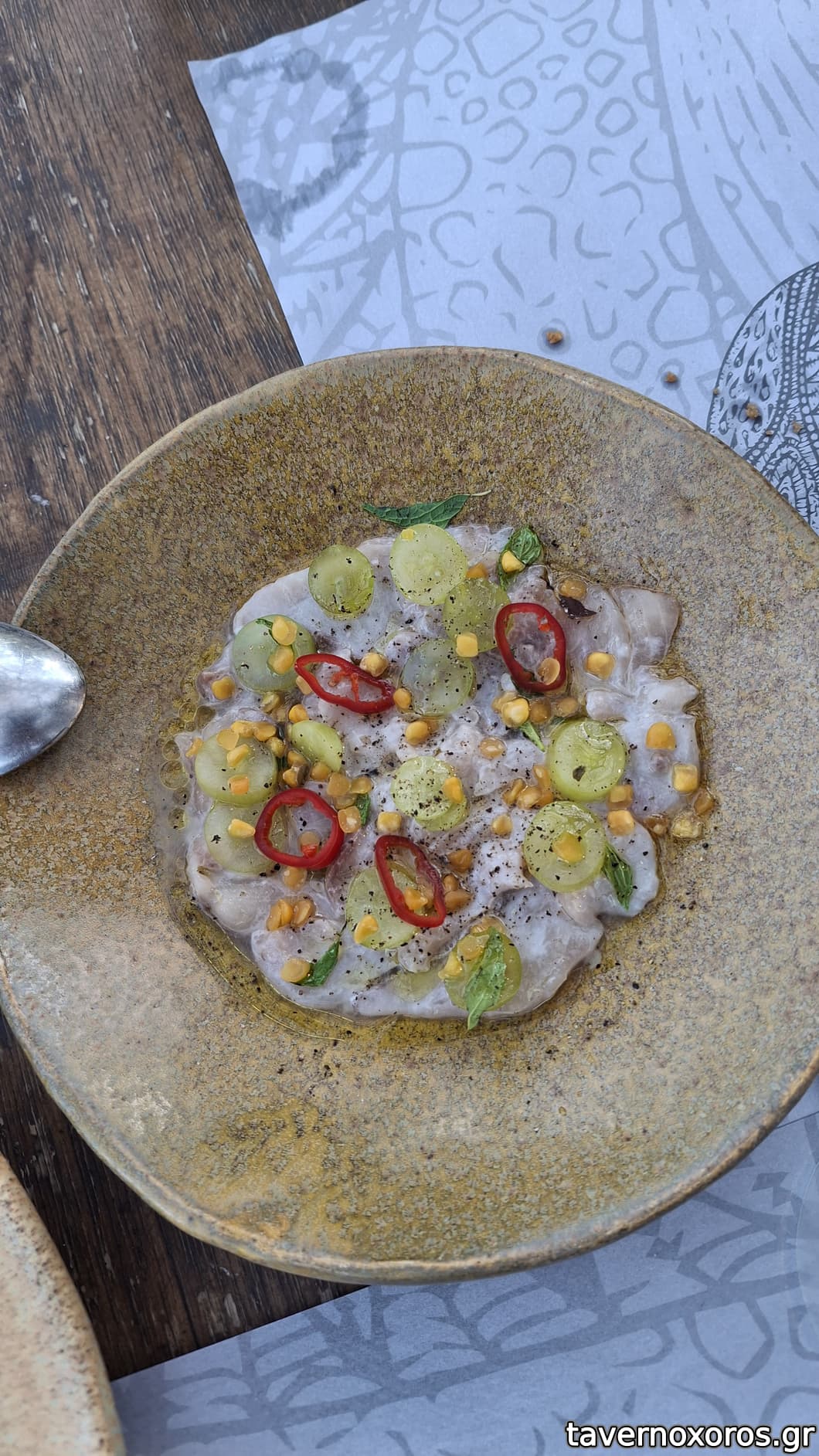 Φαγητό.. Πολύ καλό το ψωμί τους. Ντοματοσαλάτα με πεπόνι εξαιρετική και ιδιαίτερη. Την ιδιαιτερότητα την έδινε η πίκλα αγγούρι που είχε μέσα ψιλοκομμένη γιατί στο brine είχαν βάλει κολιαντρο, γλυκάνισο και ζάχαρη.. Πλιγούρι με σταφύλι σε χυμό από αγγούρι, ναι μεν αρωματικό αλλά έπρεπε να μείνει κι άλλο στον αρωματικό ζωμό του και όχι να σερβιριστεί αμέσως. Στις τελευταίες πηρουνιές που είχε τραβήξει όσο πρέπει ήταν πολύ καλό.. Κορυφαία και πανέξυπνο πιάτο τα arancini ντολμας, όπου είχαμε όλα τα υλικά των γιαλαντζί ντολμάδων μαζί με ψιλοκομμένο αμπελόφυλλο παναρισμένο σε κροκέτα. Ήταν το καλύτερο για εμένα πιάτο τους. 2 άτομα από την παρέα πήραν τον κόκκορα με την μανέστρα και τον πουρέ μελιτζάνας. Επειδή είχαμε δει το πιάτο από άλλη φίλη που είχε πάει τον Ιούλιο, αυτό που τους έφεραν ήταν κανονική ξεπέτα.. Ελάχιστο κρέας σε κομματάκια από ψητό πουλερικό (ψημένο μάλλον στον φούρνο και πιθανότατα όχι φρεσκοψημένο), μία μανέστρα απλη κοκκινιστή με πάααρα πολυ μπαχάρι και μία κουταλιά πουρέ μελιτζάνας.. Καμία σχέση μ΄αυτό που είχαμε δει στην φωτογραφια.. Ένας άλλος φίλος πήρε φλωμάρια με πέστο φυστικιού και μία φίλη φλωμάρια με κεφτεδάκια κοκκινιστά. Και στα δύο πιάτα τα φλωμάρια ήταν κακοβρασμένα και με τις σάλτσες έγιναν πάρα πολύ στεγνά. Το πέστο φυστικιού ήταν μπουκωτικό. Κανένας δεν το έφαγε όλο. Εγώ επέλεξα πιάτο ημέρας που ήταν φιλέτο τόνου που ήταν 5 μικρά κομμάτια καλοψημένου τόνου (καμία σχέση με τα φιλέτα τόνου που τρώμε και γνωρίζουμε) συνοδεία απλης σαλάτας. Από γλυκά πήραμε 2, ένα τσιζ κέικ κι ένα ρυζόγαλο, δεν δοκίμασα αλλα μου είπαν ότι είναι καλά.