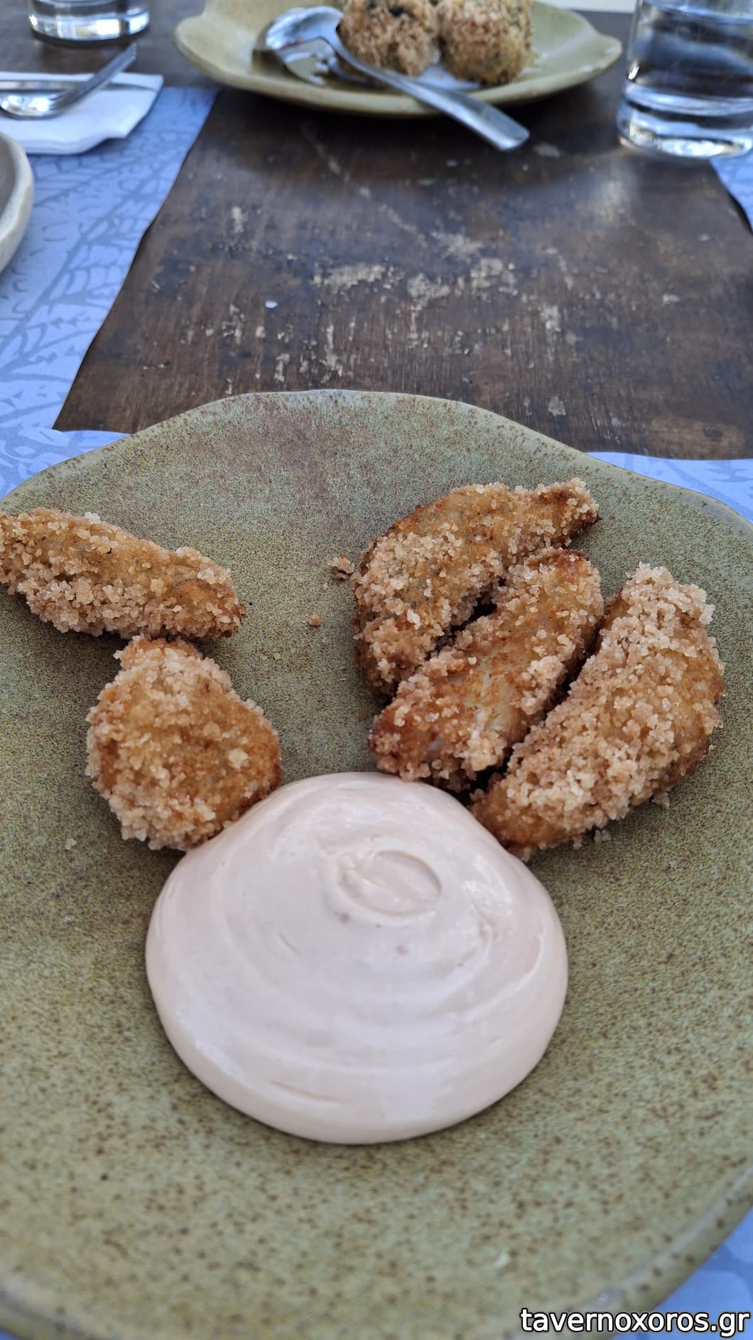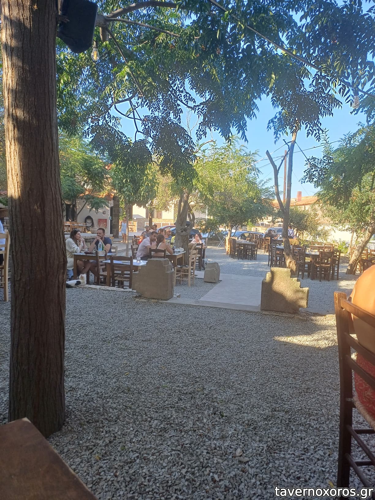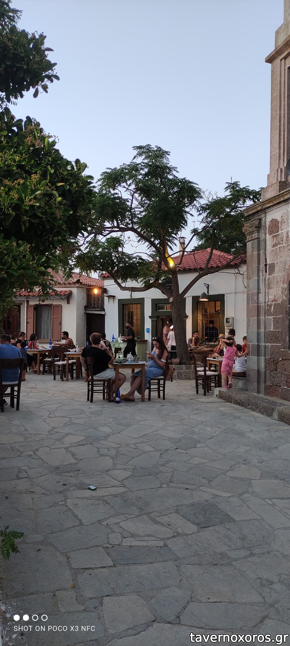 Το μαγαζί βρίσκεται σε όμορφη τοποθεσία επάνω στην πλατεία του χωριού και δίπλα από την εκκλησία. Στην μπροστινή αυλή η αναμονή (δεν είχαμε κάνει κράτηση) και στην πίσω το φαγητό. Ο κόσμος κυρίως χιπστεράδες, σερφάδες από το Κέρος και πολλοί αλλοδαποί, ωραία ατμόσφαιρα με λαμπιόνια πανηγυριού.