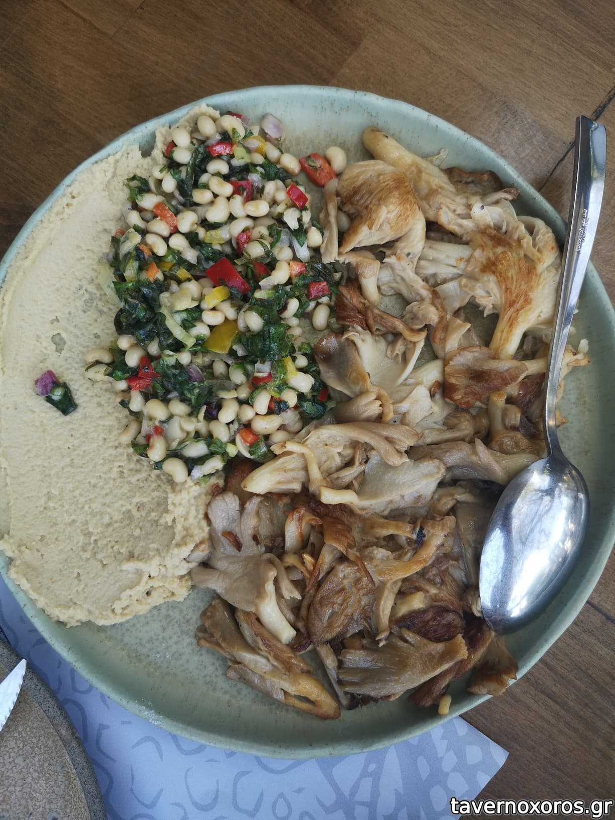 -Μανιτάρι Λήμνου σωτέ, ασπρομύτικα φασόλια Λήμνου με μυρωδικά, χούμους - καλό