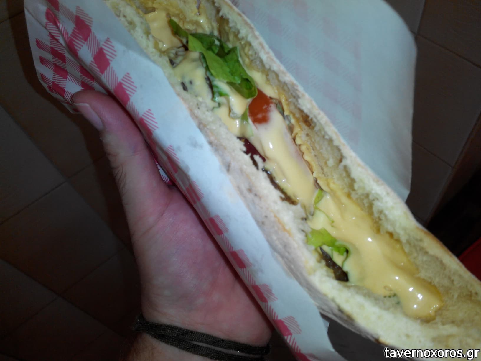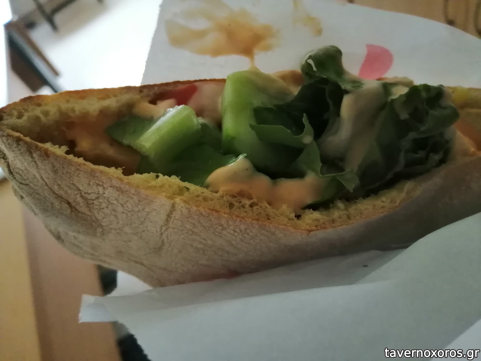 5 € εξασφαλίζει κανείς ένα ζεστό, φρεσκοφτιαγμένο, νόστιμο, μεγάλο πανίνι με κοτοπουλάκι, σαλατικά και σως. I do.