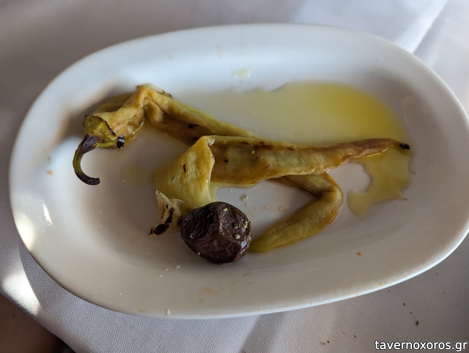 Φαγητό: Δοκιμάστηκαν χταπόδι ψητό (οκ προς μέτριο), κολοκυθάκια τηγανιτά (κολασμένα), μύδια τηγανιτά (διπλά, πολύ καλά), μύδια σαγανάκι άσπρο (αξιοπρεπή), καλαμάρι ψητό (ωραίο και μεγάλο), σκουμπρί καπνιστό (μέτριο προς καλό), μελιτζάνες τηγανιτές (σκέτη ροδέλα, πολύ λάδι), αγγουροντομάτα (πολύ καλή), γαύρος τηγανιτός (πολύ καλός), και κάτι σε ψητό τυρί που δέ θυμάμαι. Αυτά με 2 ούζα και πολλά νερά ~60 ευρώ. Στο τέλος κερασμένο καρπούζι.