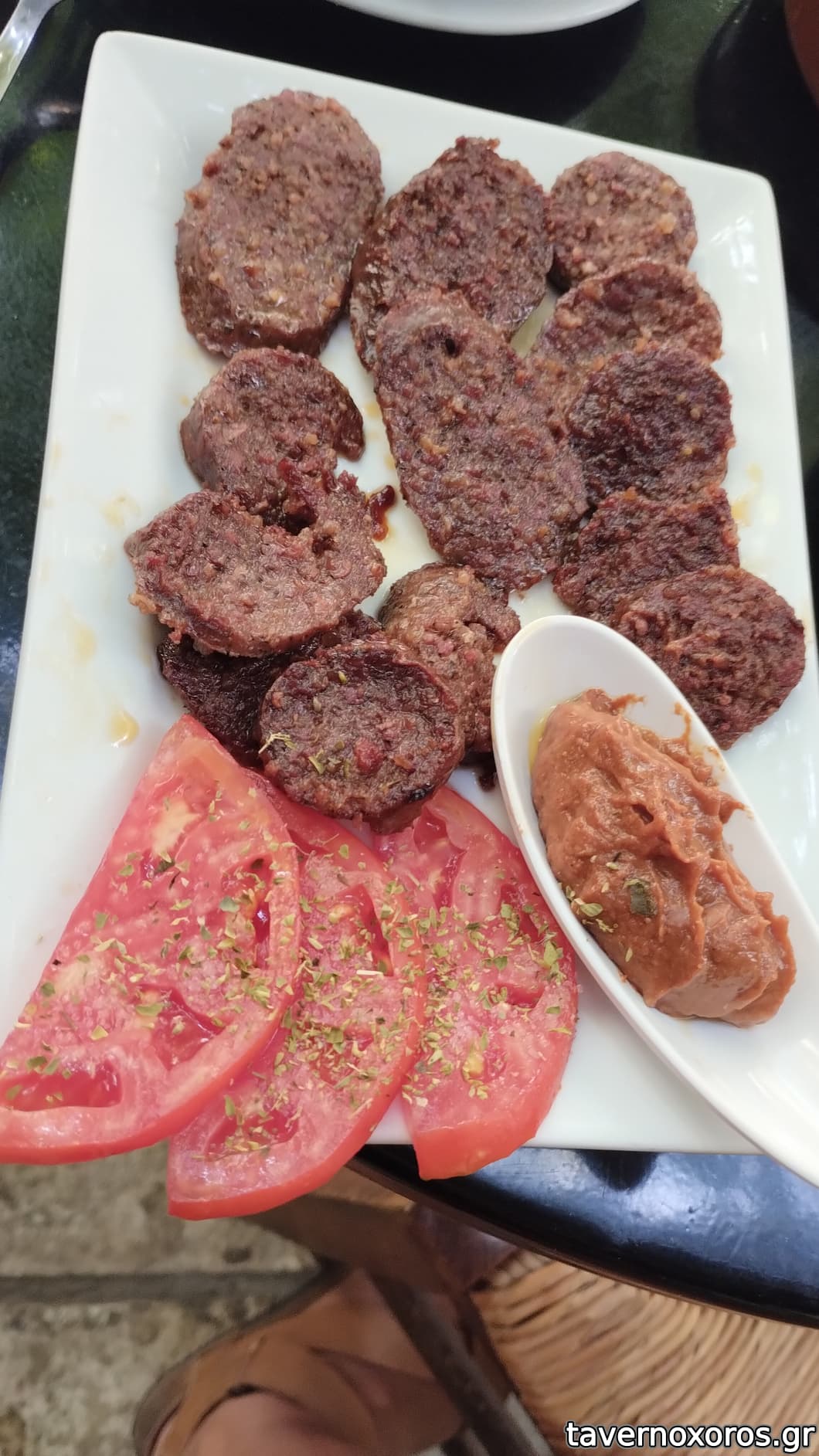 Επίσης Φάβα, Παστράμι, Απάκι, Ντάκος και τέλος για επιστέγασμα Λουκάνικα ψητά (πράσο, πικάντικο, τζουμαγιάς). Κάπου εκεί μέσα στα λουκάνικα είχε μια φοβερή γλυκιά κόκκινη σως πιπεριάς που μου άρεσε τρελά και ζήτησα και μου φέραν εξτρά, χωρίς χρέωση ευτυχώς! Ρακή καλή, και στο τέλος γύρισμα σε Βεργίνα Κόκκινη 0,