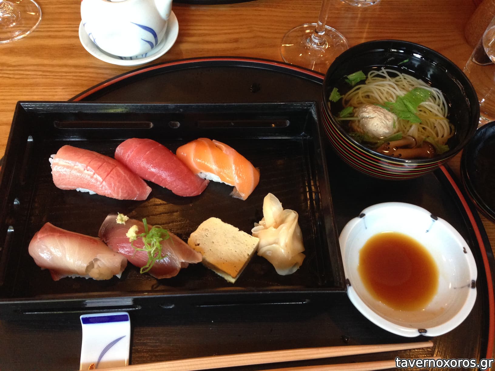Το σουσι καλό, το ένα κομμάτι το ζητησαμε εξτρα (toro tuna) που υποτίθεται ειναι κ το καλύτερο αν κ η διαφορα είναι μικρή. Μαζι κ ενα κομμάτι ιαπωνικής ομελέτας και το μπολ με ψαροσουπα, μανιταρια και εναν κεφτε απο παπια.
