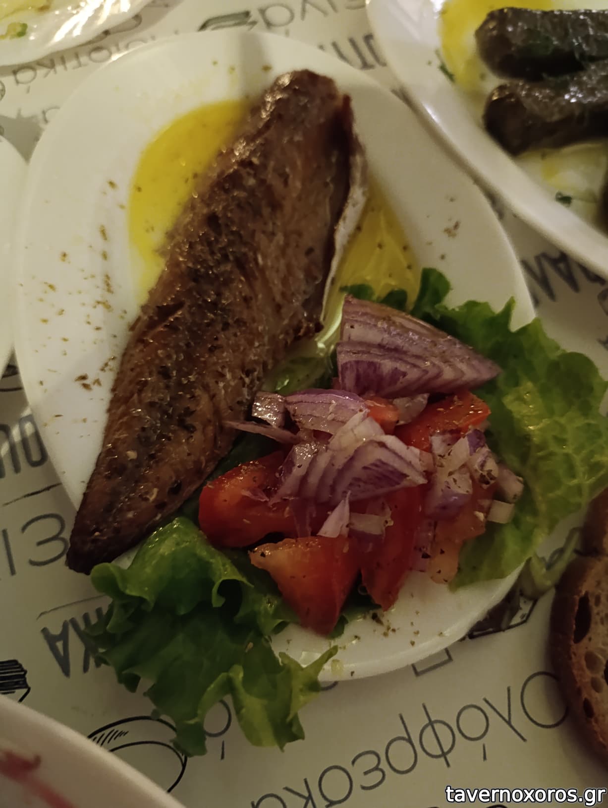 Ντολμαδάκια καλά, μελιτζανοσαλάτα με περίεργη υφή -πιθανως ετοιματζιδικη-, φασόλια δεν δοκίμασα, σκουμπρί ΟΚ, τυρί Κρήτης καλό, παστουρμαδοπιτα καλή, κολοκυθοκεφτέδες καλοί.