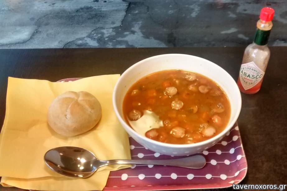 εχει 6 μικρα καζανια τα οποια γεμιζουν αναλογα με την εποχη, εγω πετυχα και θυμαμαι: φακες με διαφορα λαχανικα, σουπα μπροκολο, σουπα ντοματας, μια κοτοσουπα.