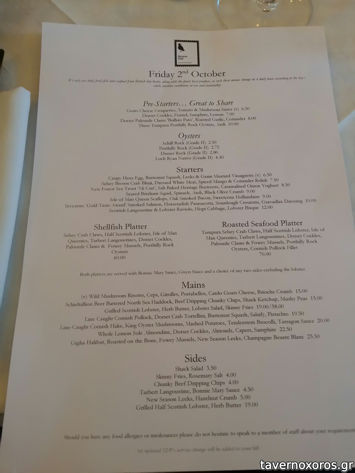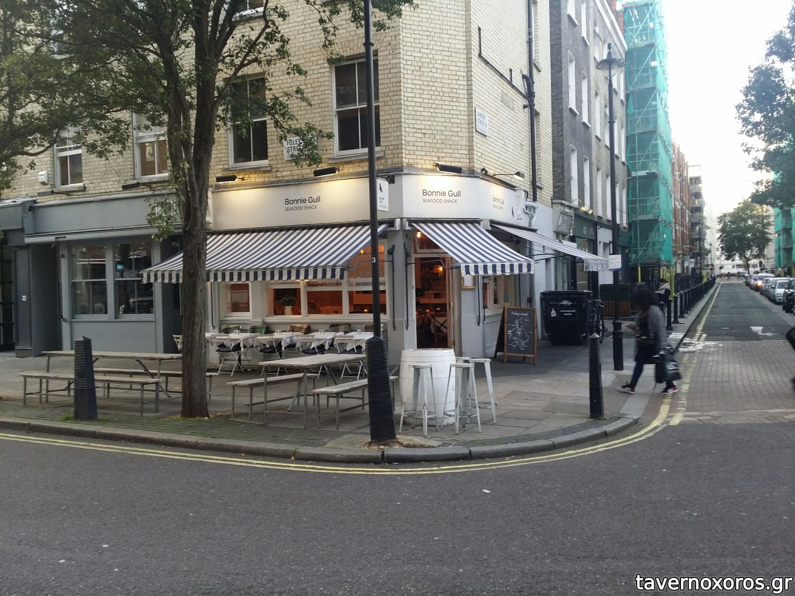 fact 2: έχοντας χωνέψει το fact 1 αποφασίσαμε να βγούμε για ψάρι στο Bonnie Gull όπου τα περισσότερα πιάτα ξέραμε ότι είναι κατεψυγμένα. Έχει και oyster bar -όπου εδώ οι Άγγλοι το κατέχουν ίσως καλύτερα και από τους Έλληνες.