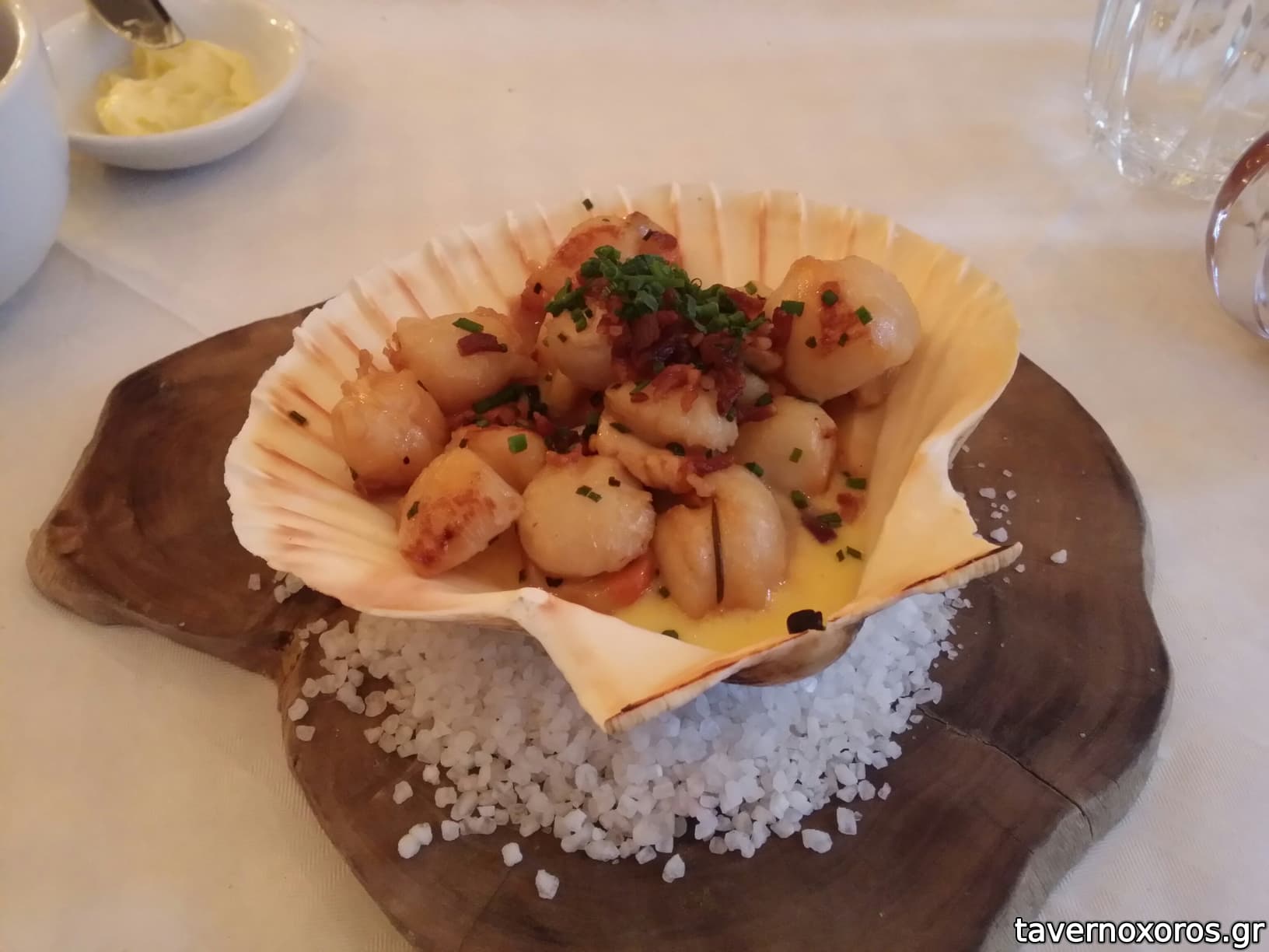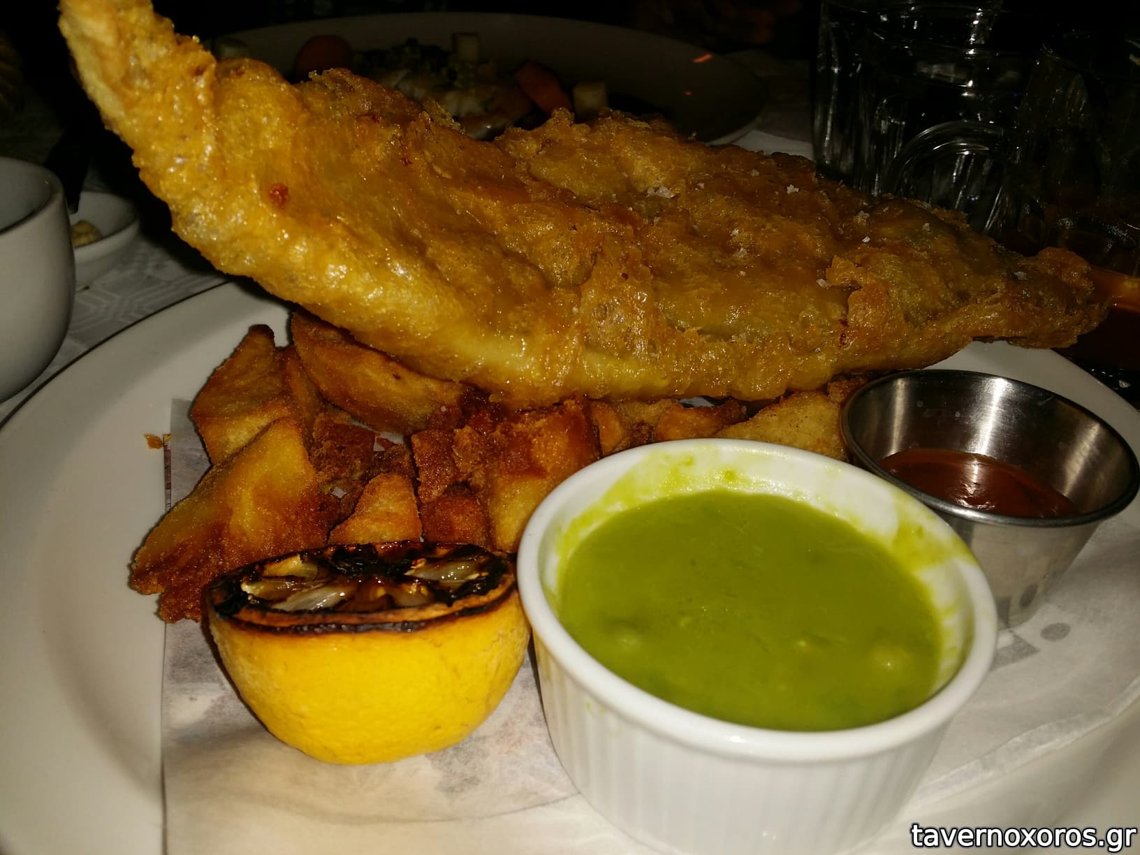 Φαγητό: bisque αστακού οκ, χτένια με καπνιστό bacon αδιάφορο, fish & chips μπακαλιάρος αδιάφορος, ένα άλλο είδος μπακαλιάρου οκ.