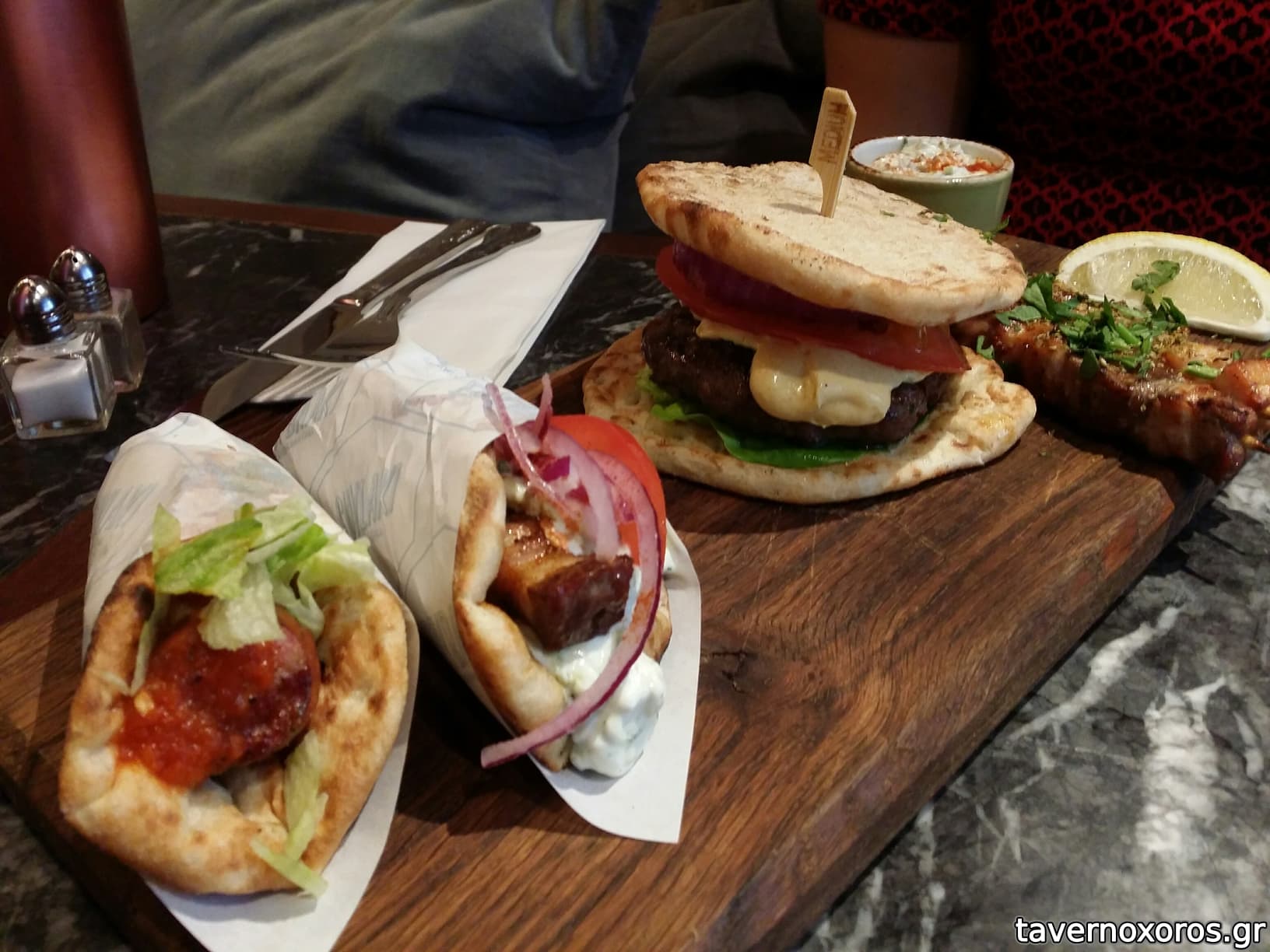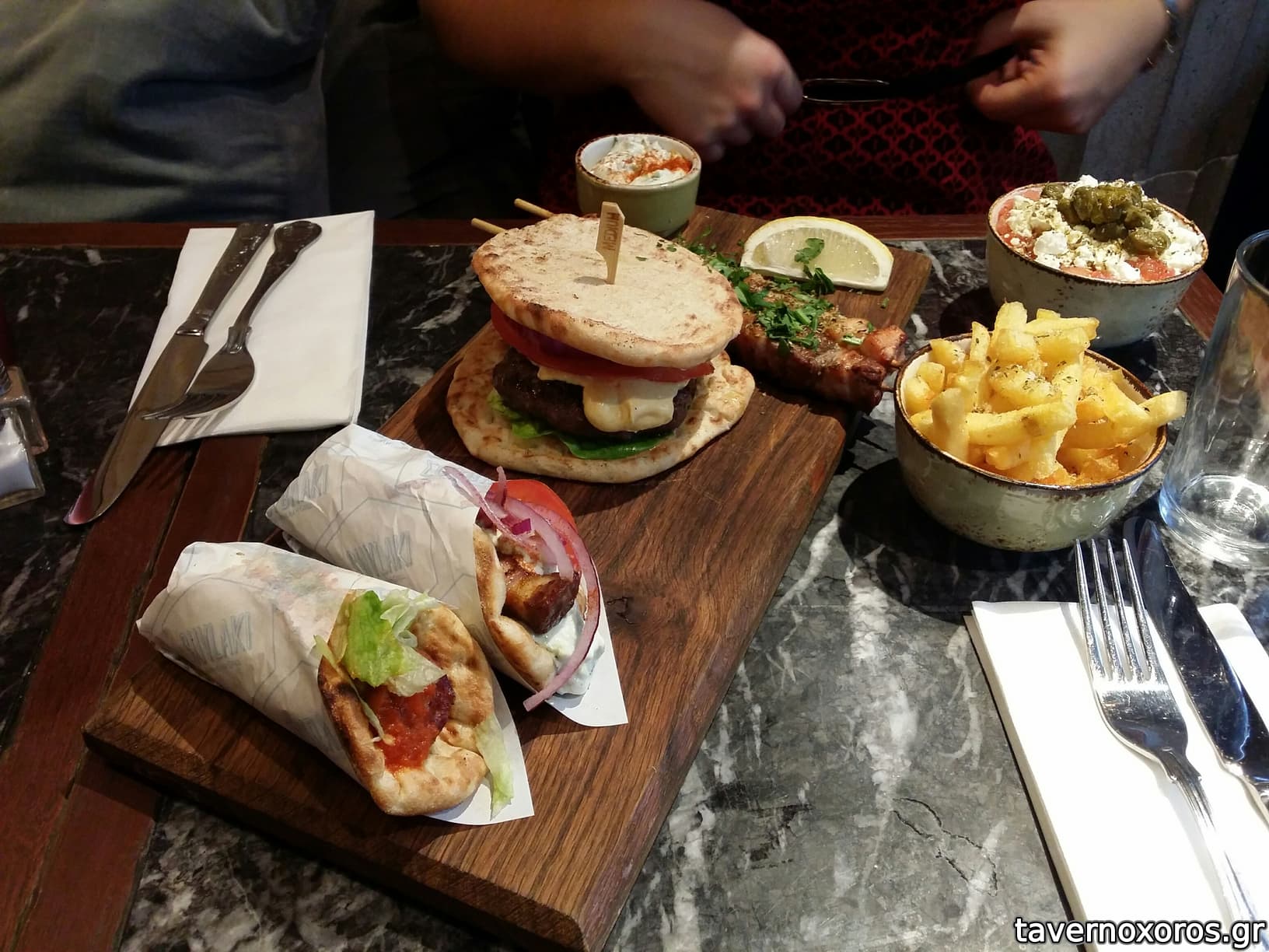 Φαγητό: πήραμε το combo για 2 άτομα το οποίο είναι 2 μικρές πίτες, 2 τεμάχια σουβλάκι, 1 burger, 2 "
