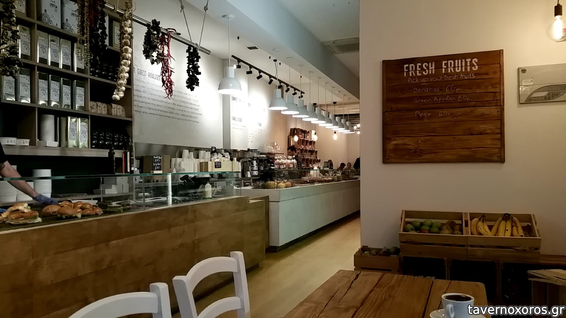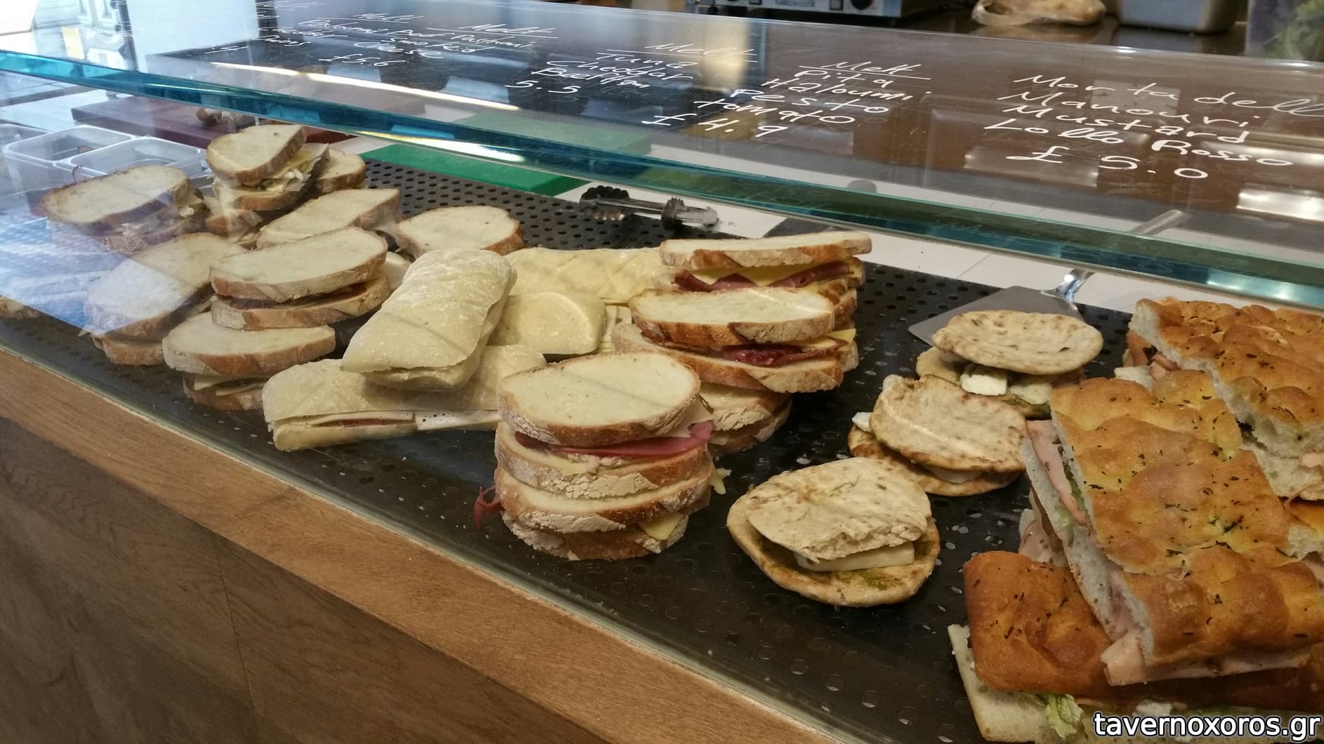 Δεν προσφέρει εστιατορικά πιάτα μόνο ζεστά και κρύα sandwich, σαλάτες, ελληνικές πίτες και άλλα μικρογεύματα.