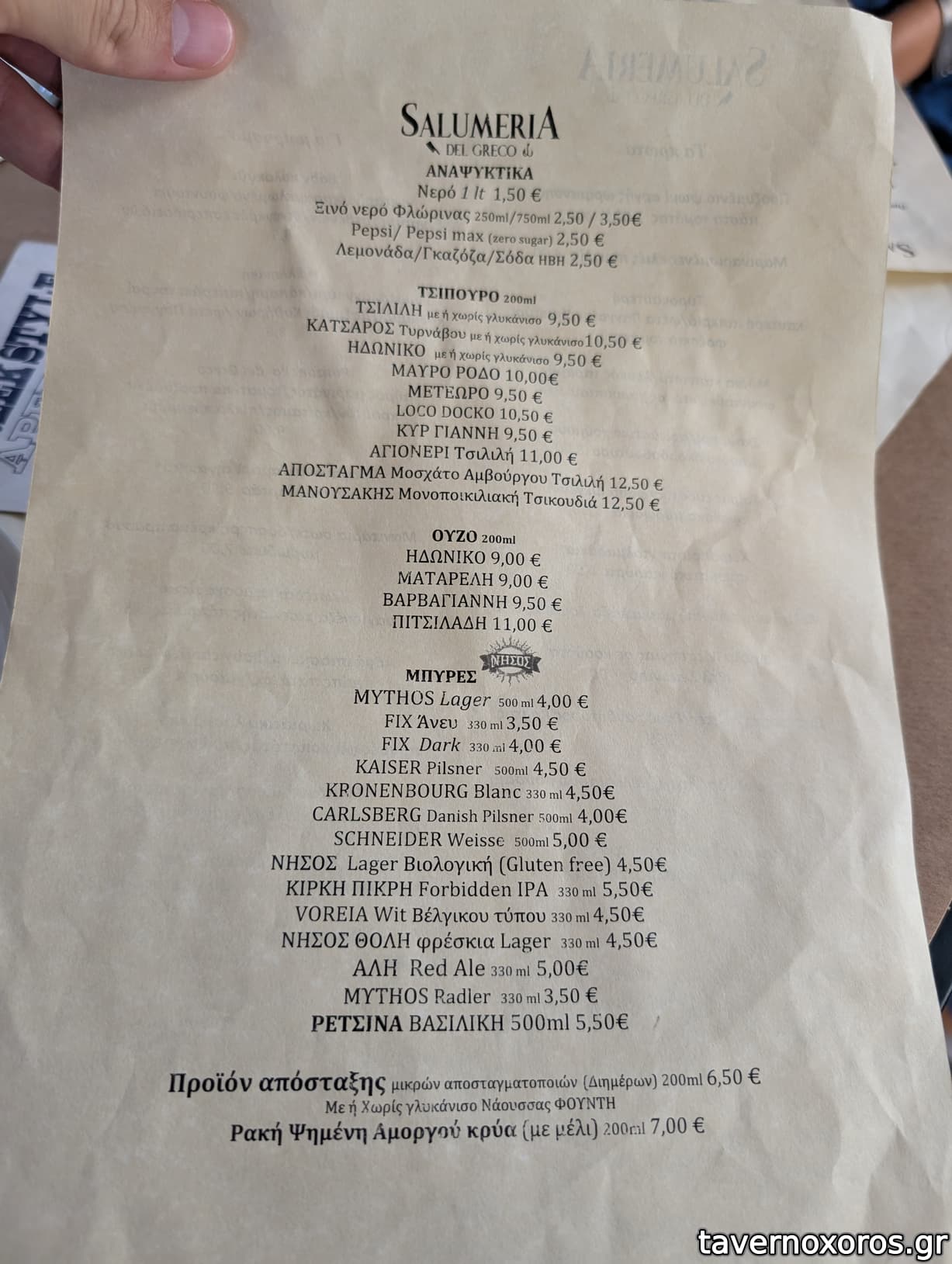 Μαζί με 3 τσίπουρα εμφιαλωμένα στα 60 ευρώ, δηλαδή 20 ευρώ το άτομο για λίγο τσιμπολόγημα και ποτό.