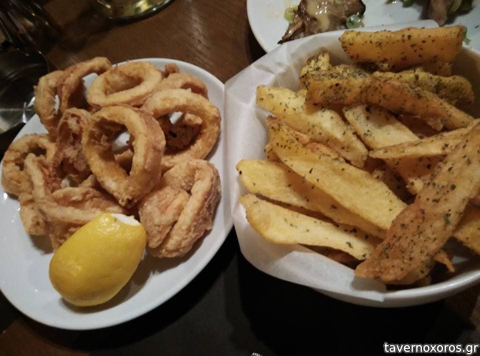 Πατάτες και καλαμάρια τηγανιτά όχι κάτι το ιδιαίτερο απλά καλά.