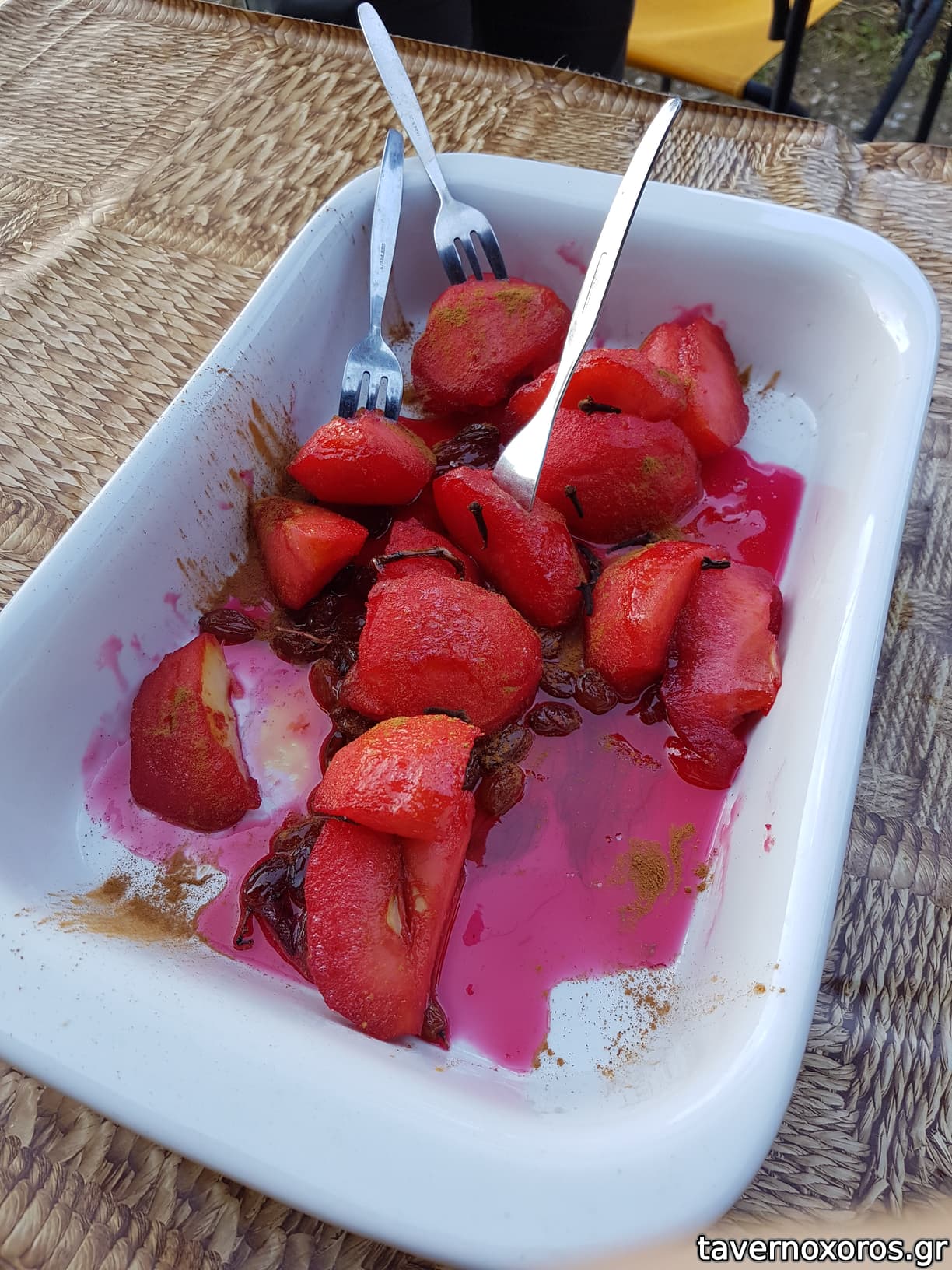 Στα του φαγητού, ψωμάκι ζυμωτό ζεστό, σαλάτα με φασόλια, πανσέτες-λουκάνικα στην γάστρα. Όλα πάρα πολύ καλά. Μας άρεσαν πολύ.