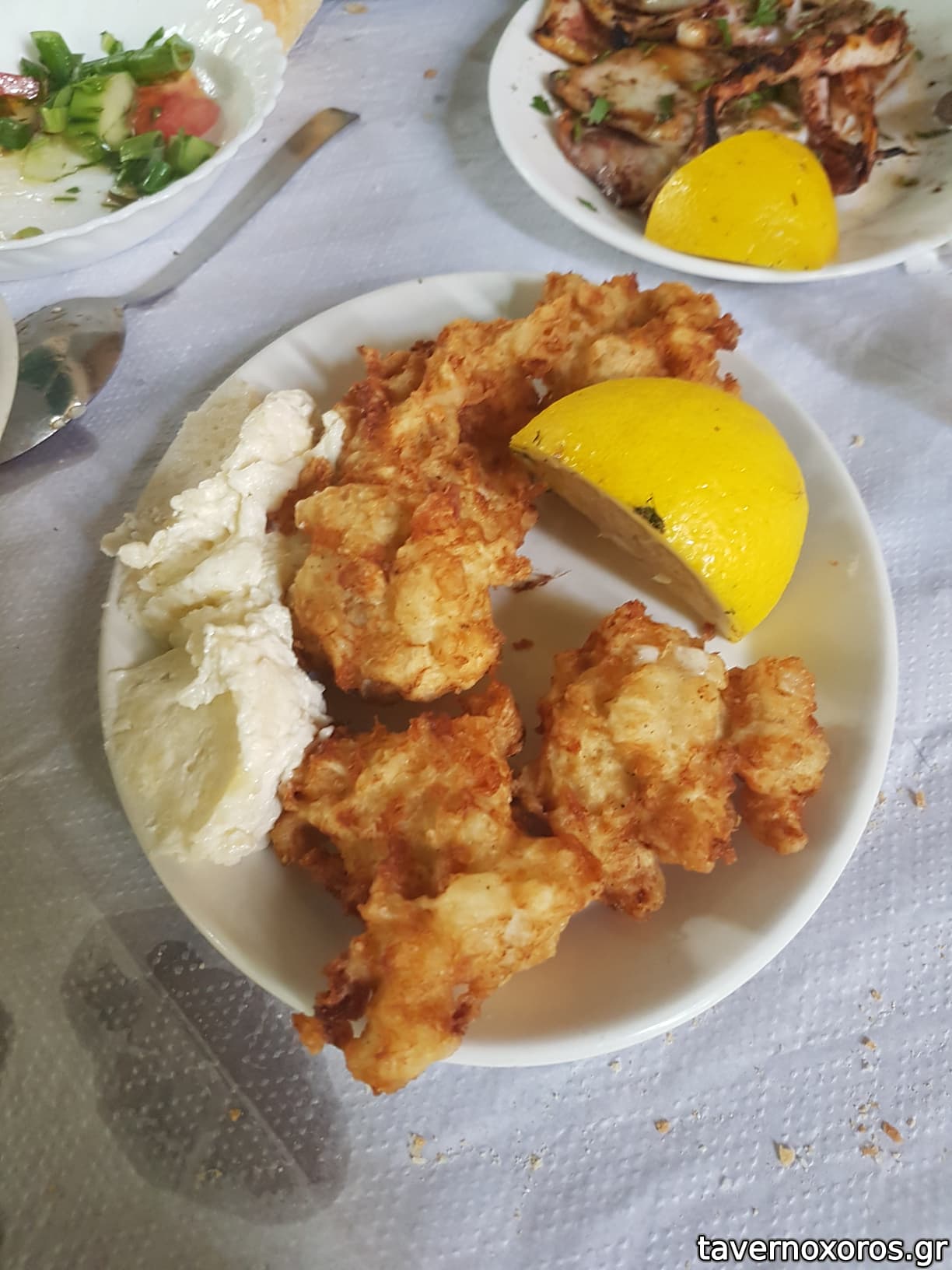 - Γαύρος τηγανητός. Καλός, φρέσκος και μεγάλος, με χάλασε λίγο η κρούστα που είχε από το πολύ αλεύρι.