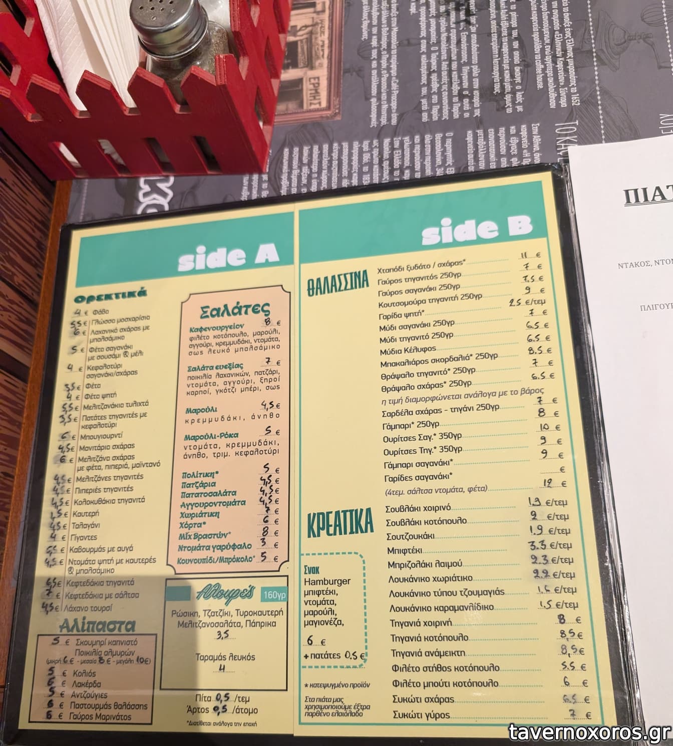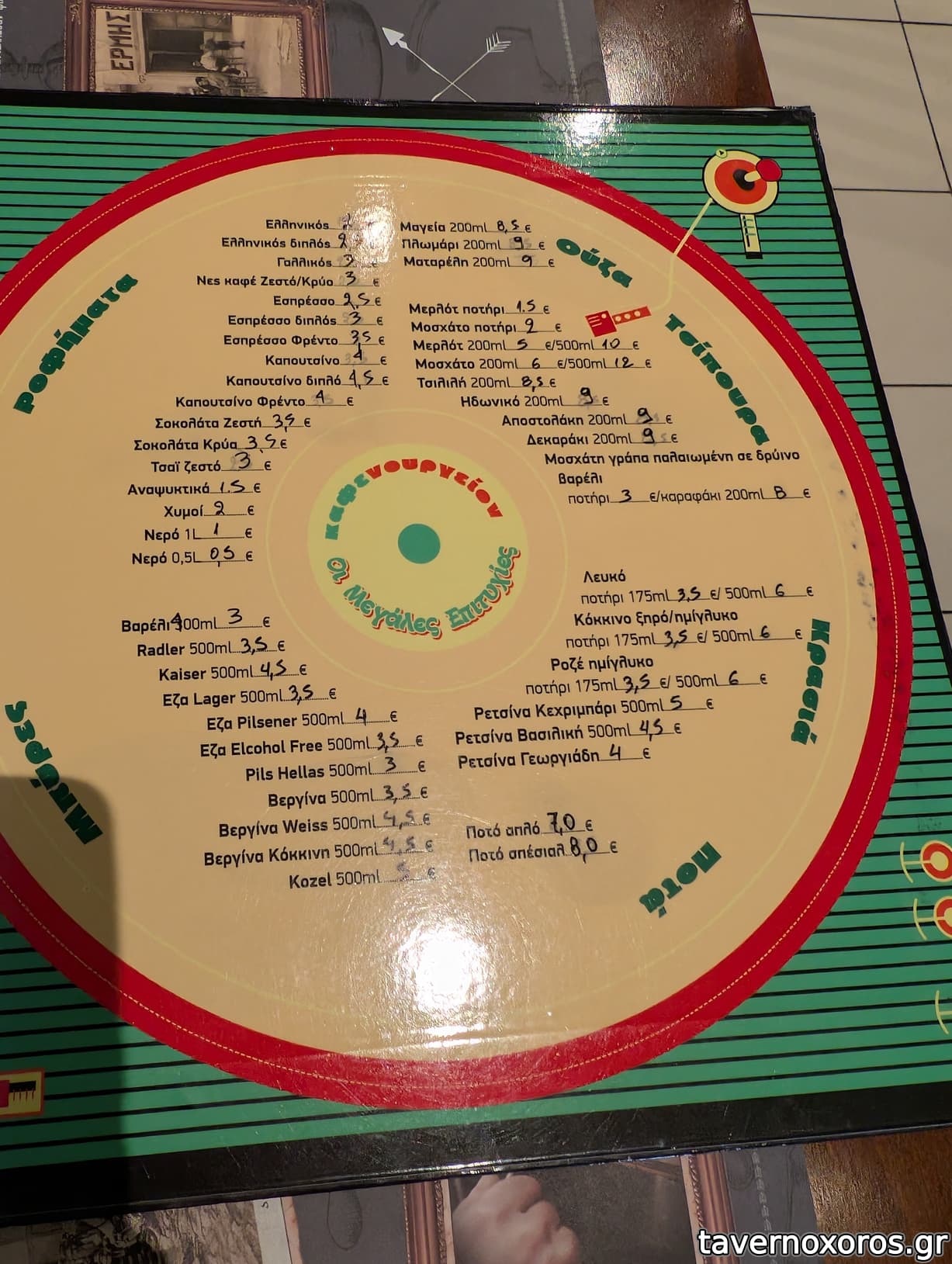 | Λέξεις κλειδιά | #tv, #χαρτιά, #take away, #γλώσσα μοσχαρίσια, #πιπεριές, #ντολμαδάκια, #φασόλια γίγαντες, #καβουρμάς, #ταμπουλέ, #κολοκυθοκεφτέδες, #πάπρικα, #κεφτεδάκια, #χταπόδι, #γαύρος, #σαρδέλα, #αθερίνα, #σαφρίδια, #μύδια, #σουπιές, #μπακαλιαράκια, #γάμπαρη, #πεσκανδρίτσες, #γαρίδες, #μπακαλιάρος σκορδαλιά, #θράψαλα, #κουτσομούρες, #σουβλάκια, #σουτζουκάκια, #τηγανιά, #μπιφτέκι, #λουκάνικο, #συκώτι, #κοτόπουλο, #χοιρινή, #καφενουργείο |