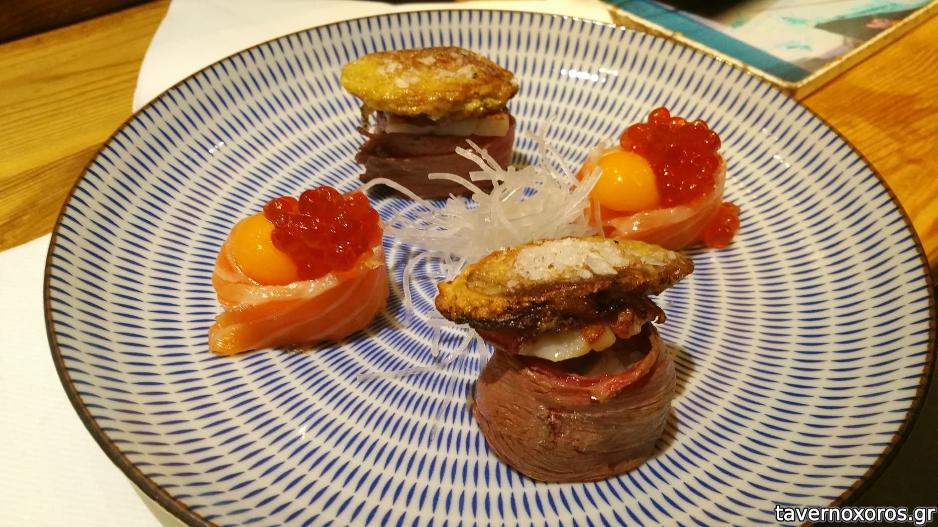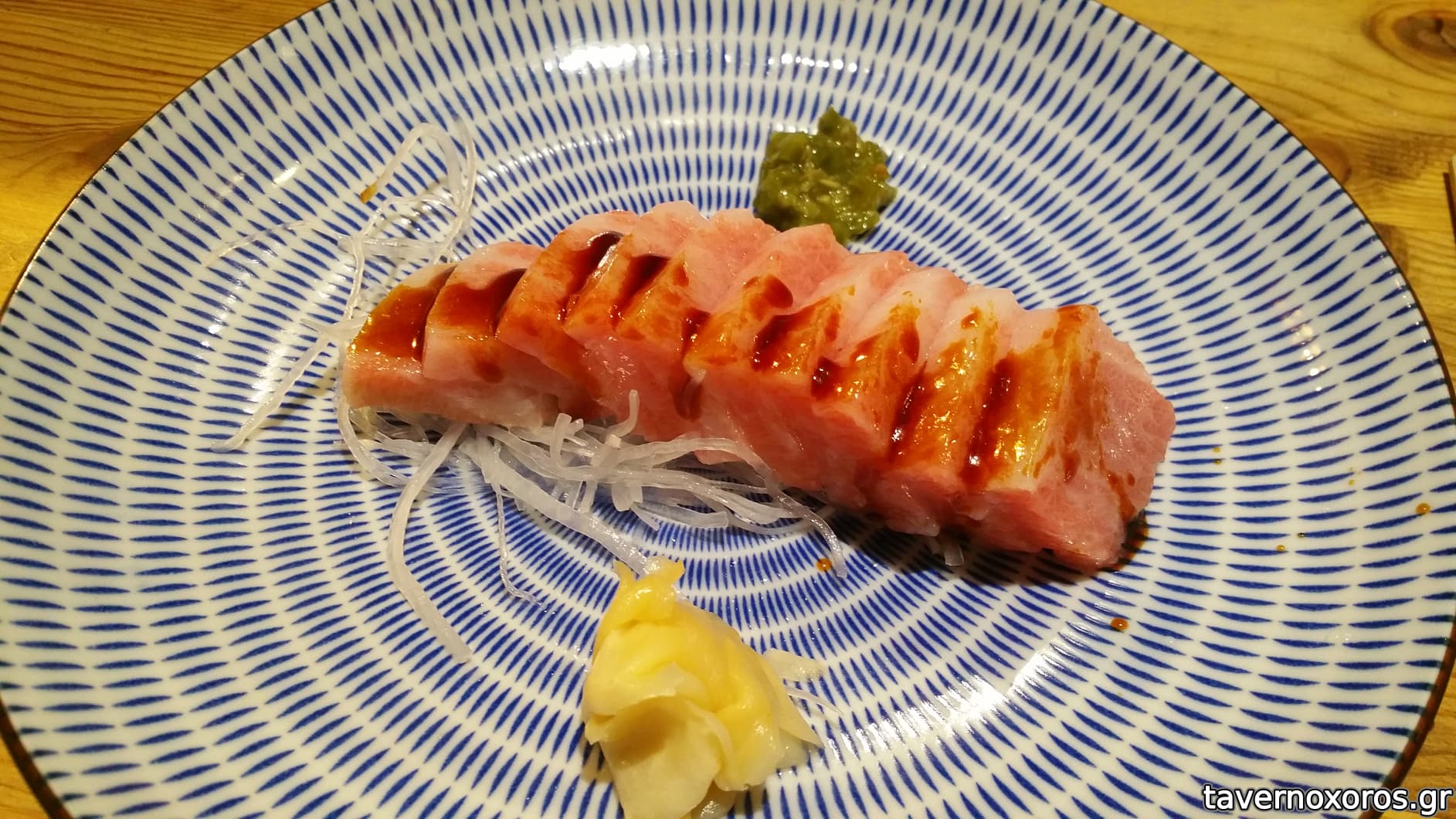 Το μαγαζί δεν το έχουν Ιαπωνέζοι, όμως οι chef που το δουλεύουν έχουν εργαστεί και ζήσει πολλά χρόνια Ιαπωνία και έτσι το αποτέλεσμα είναι 100% αυθεντικό. Με την βοήθεια της πρώτης ύλης που προσφέρει στα θαλασσινά η Μεσόγειος, θα απολαύσετε τα καλύτερα κομμάτια τόνου και γενικώς θαλασσινών ever με τιμές πολύ λογικές για αυτό που σου προσφέρουν. Υπολογίστε περίπου 40-50ευρώ/άτομο με ποτά.