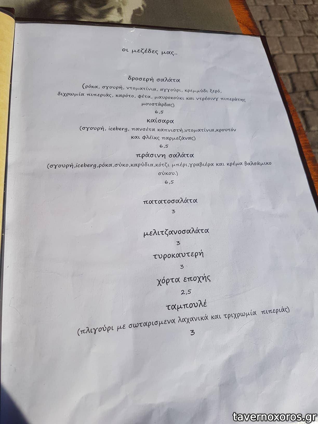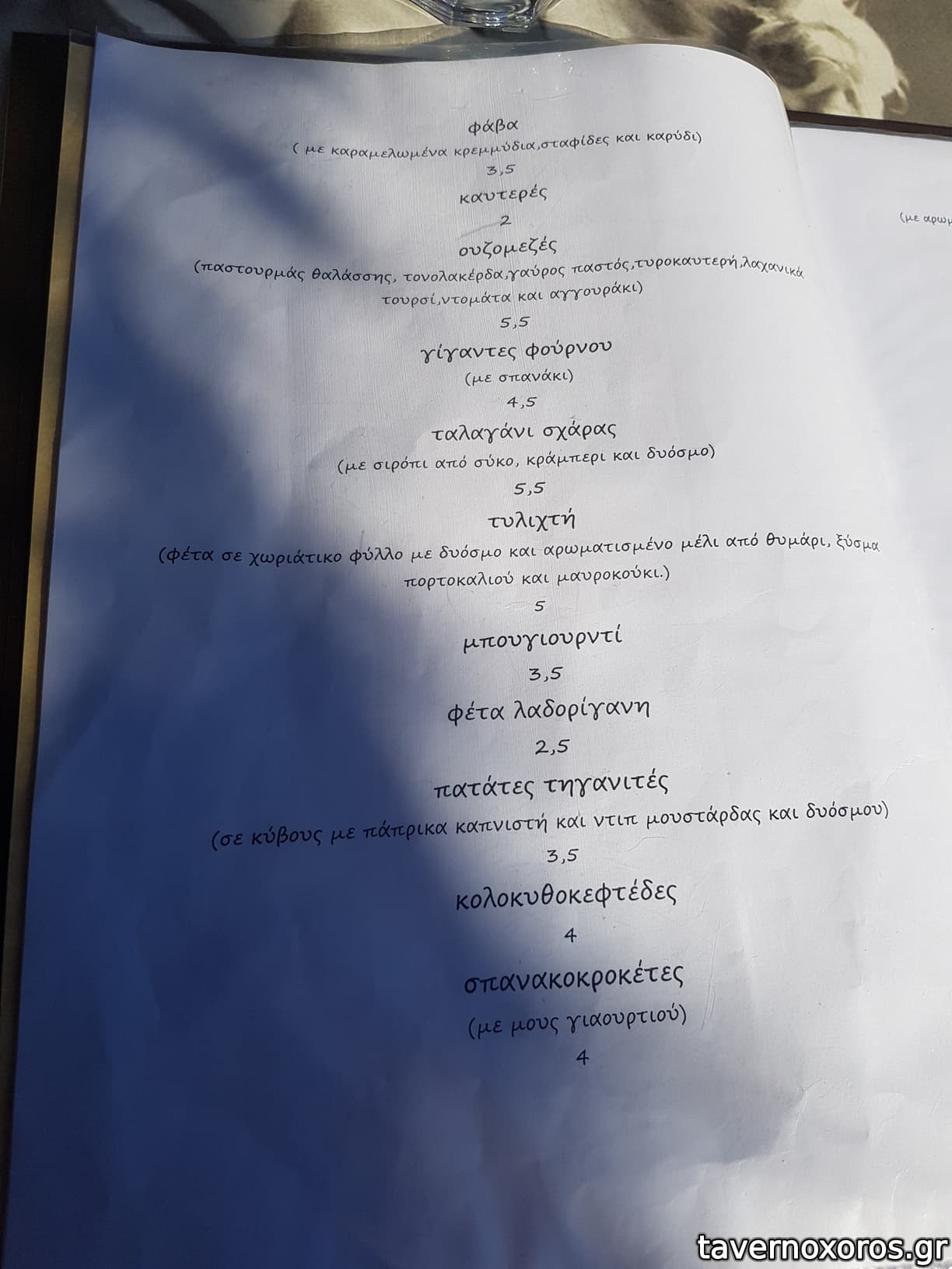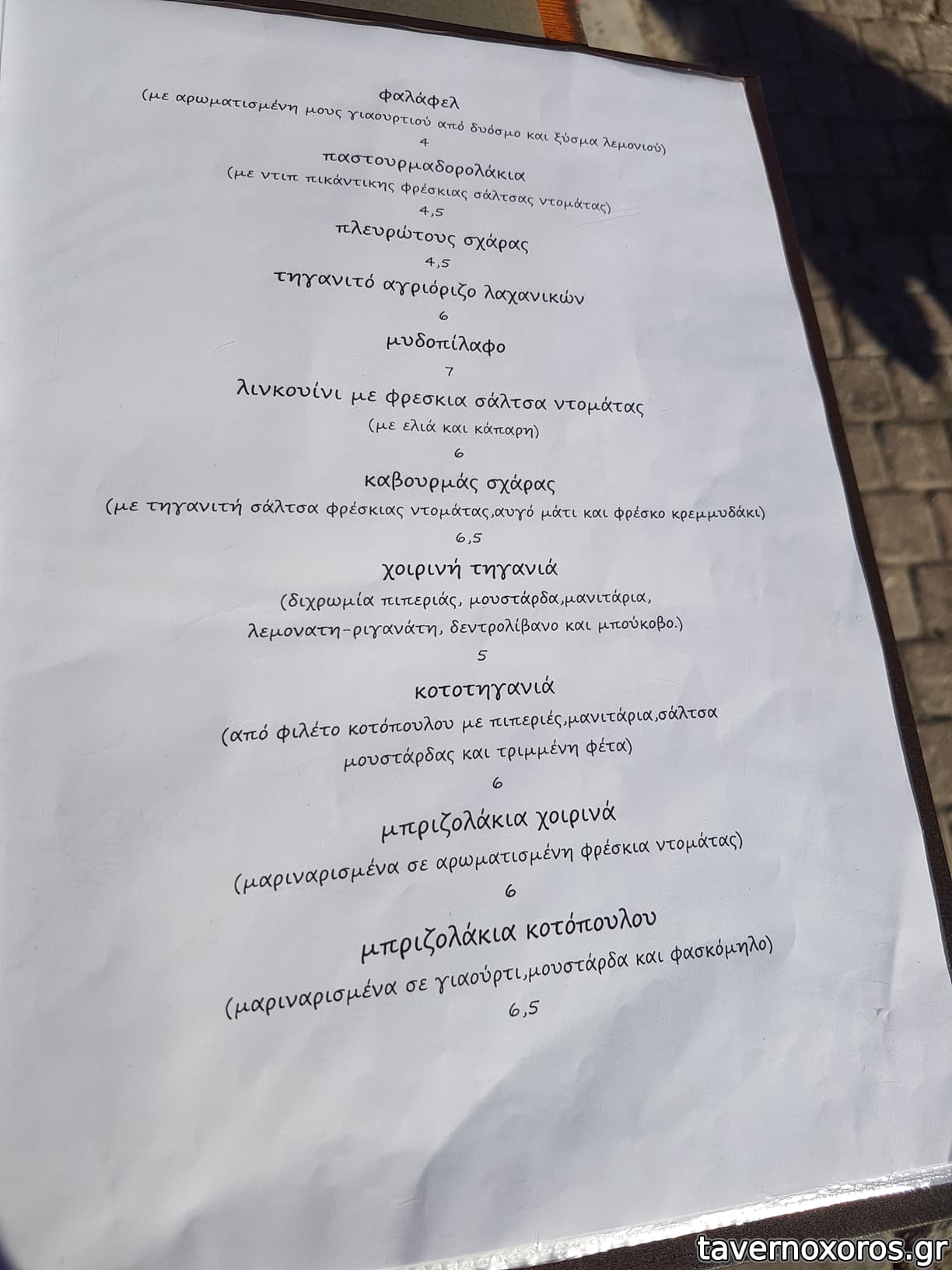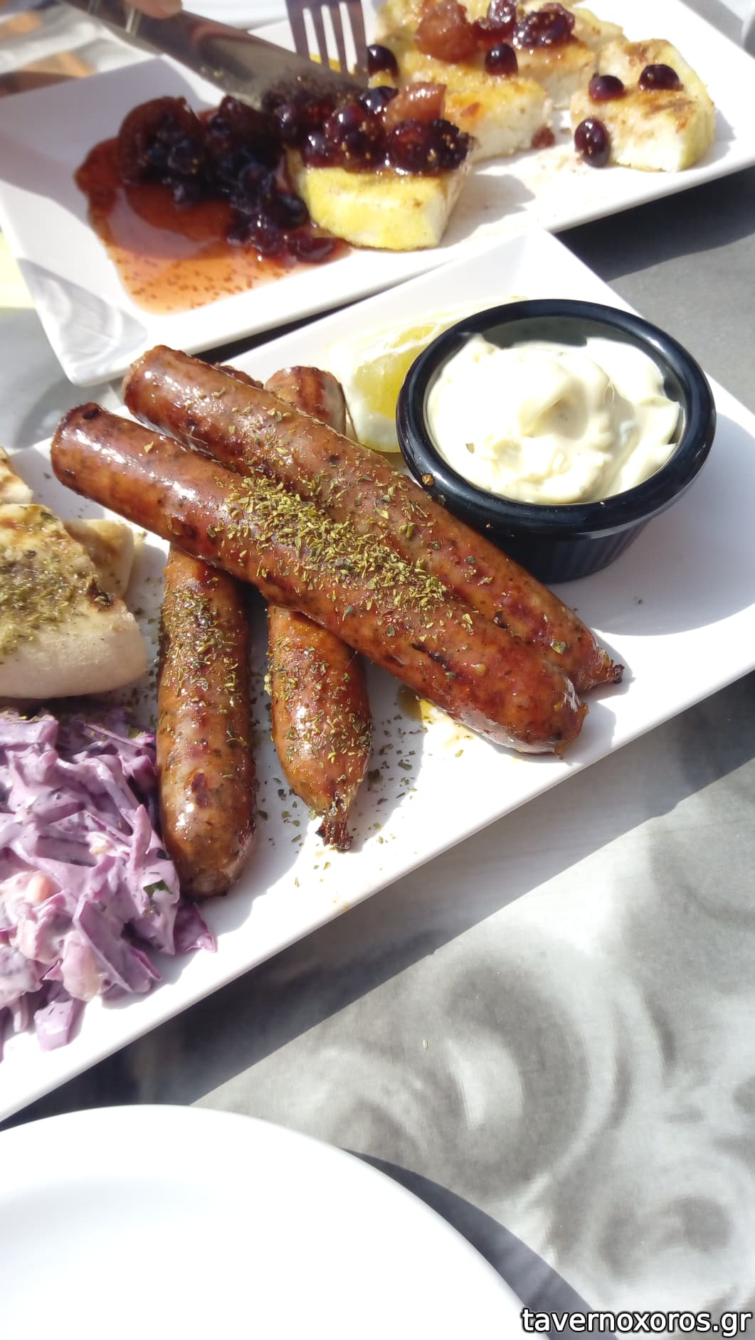 Κάτσαμε έξω και προς τιμήν τους μας άλλαξαν 2 φορές τραπέζι αγόγγυστα, ώσπου να βρούμε σκιά. Το φαγητό τώρα, το βρήκαμε καλούτσικο, σε περιποιημένο στυλ. Τα αρνίσια σουτζουκάκια και ιδίως τα κοτομπριζολάκια ήταν τα καλύτερα. Κάποιος από μας παρήγγειλε έναν μπακαλιάρο για τη μέρα, αλλά ήταν εντελώς άκυρος.. Ποτά μπύρα και λευκό κρασί εμφιαλωμένο, καλό.