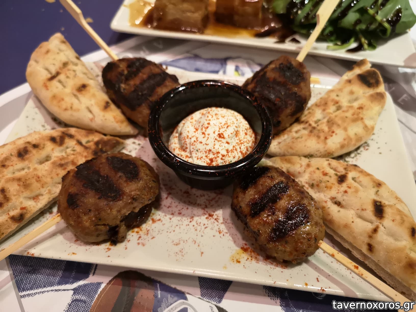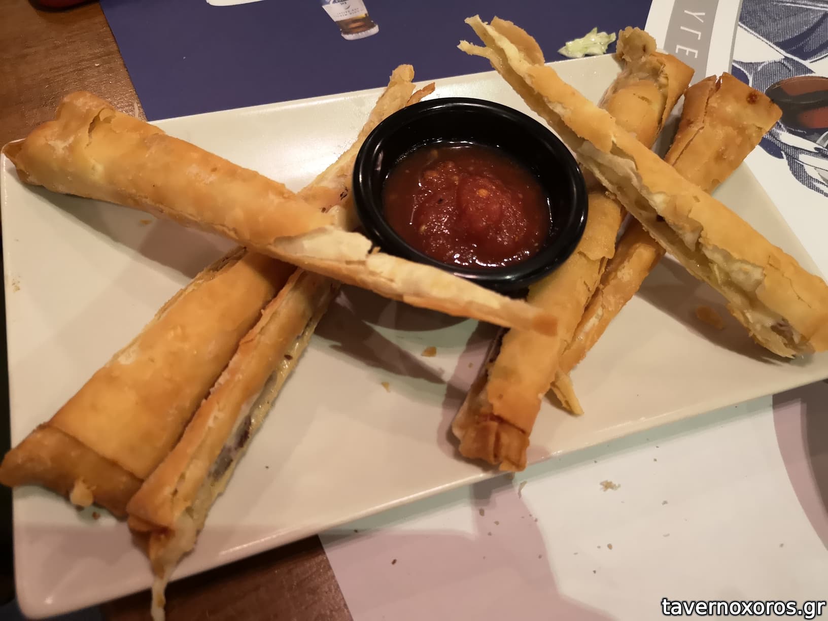 Παστουρμαδορολάκια (πολύ καλά, εξαιρετική και η σάλτσα)