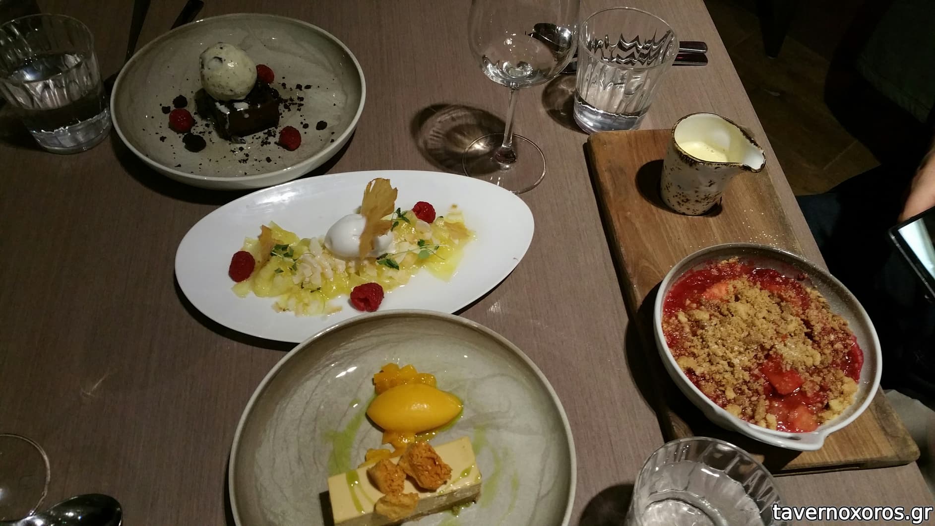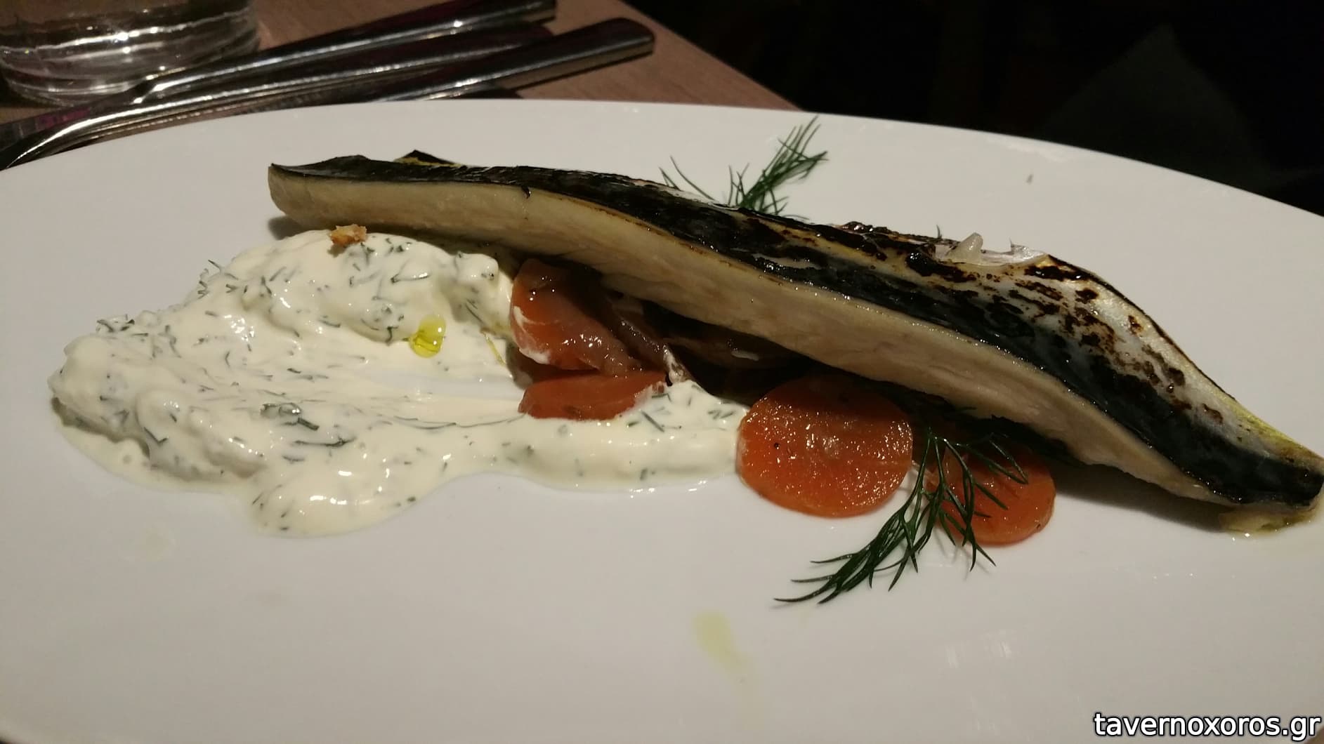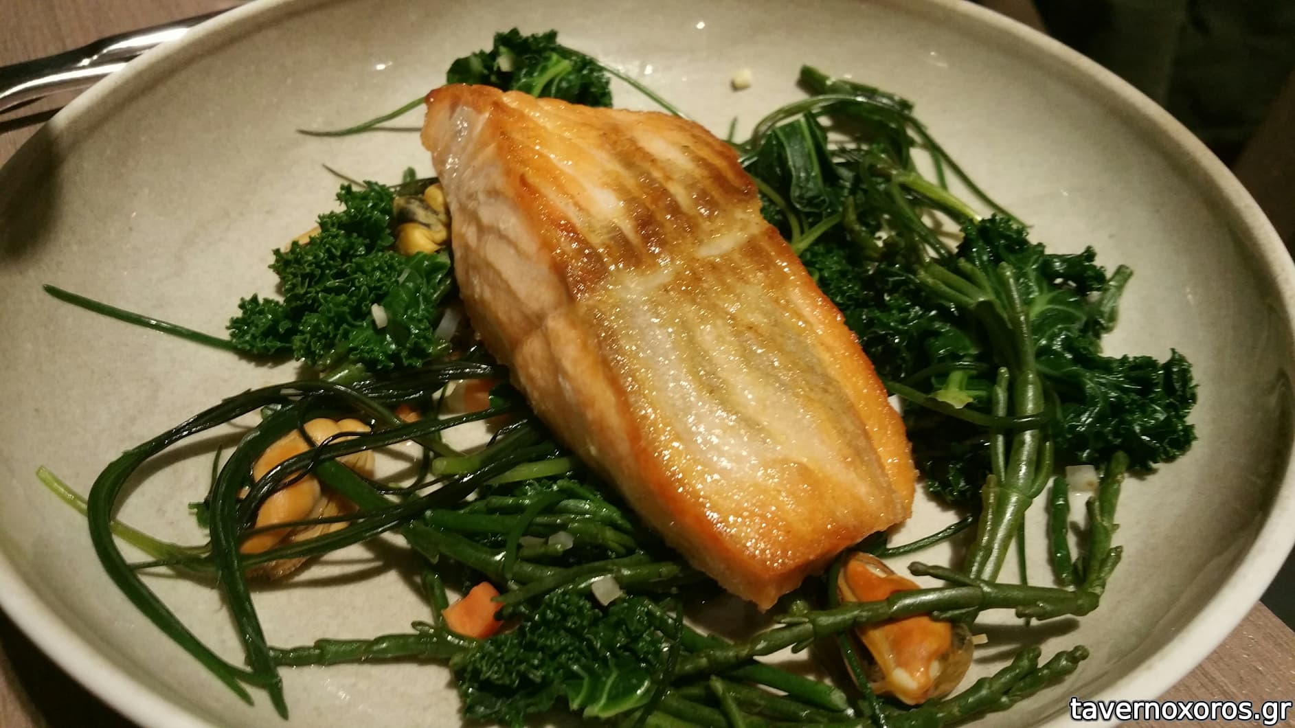 φαγητό ήταν καλύτερο από ό,τι περίμενα. Οι μερίδες τους ήταν καλές σε μέγεθος, παρουσίαση και γέυση. Από τα ορεκτικά όλα ήταν πάνω κάτω οκ, στα κυρίως, το λαυράκι ήταν πολύ καλό όπως και ο σολομός ο ποίος ήταν σερβιρισμένος με μύδια και βραστά αγριόχορτα καθώς και ένα ζωμό από τα μύδια τον οποίο μας τον περιέχυσε από πάνω. Τα γλυκά επίσης ήταν αρκετά καλά.