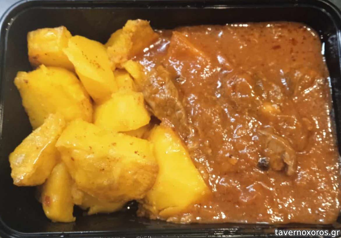Μοσχαράκι κοκκινιστό με πατάτες φούρνου