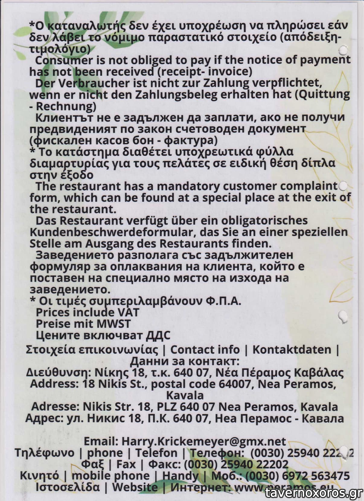 | Ωράριο | 11:00-22:30, Κυ 11:00-21:30, Τε κλειστά |