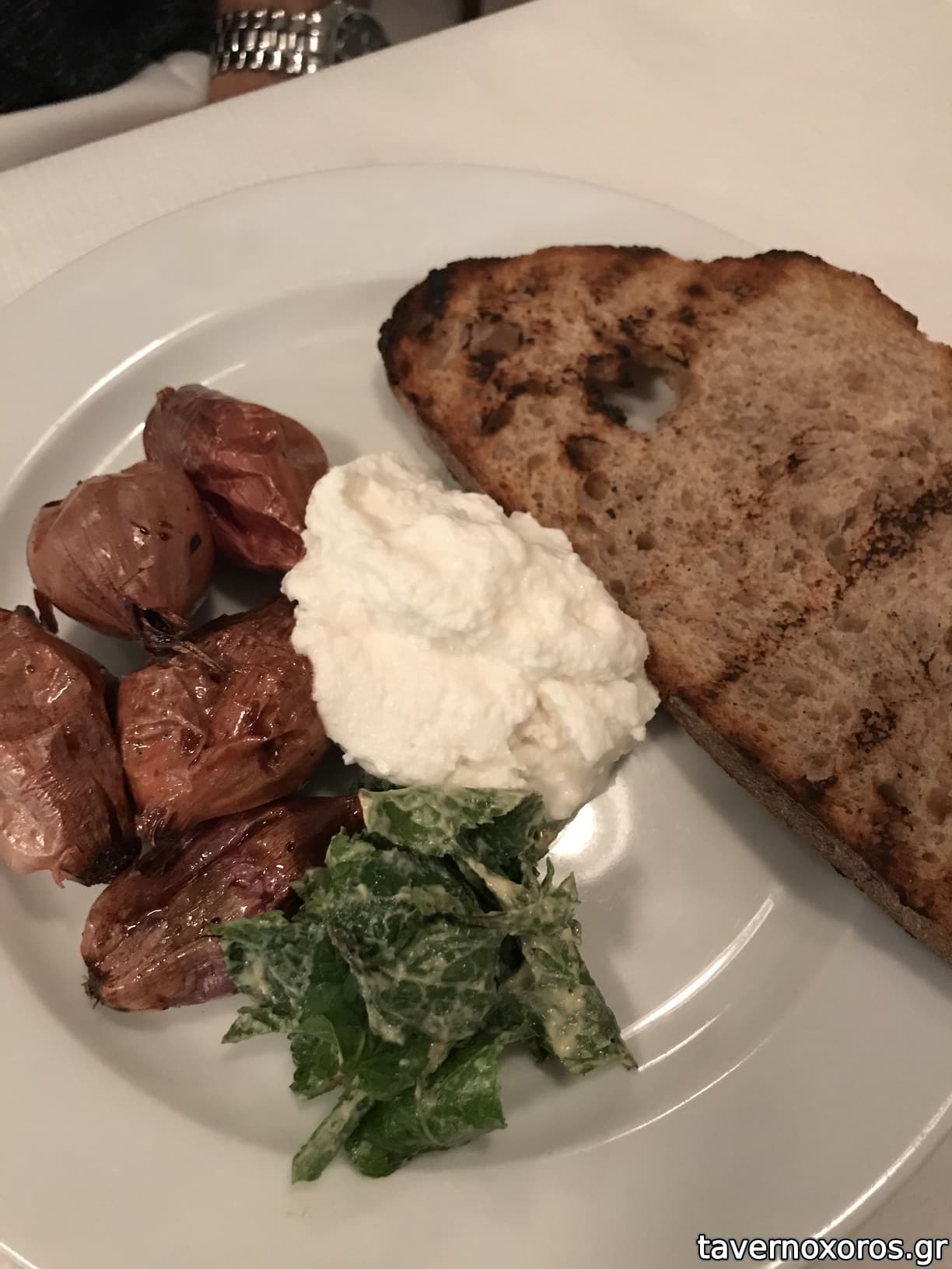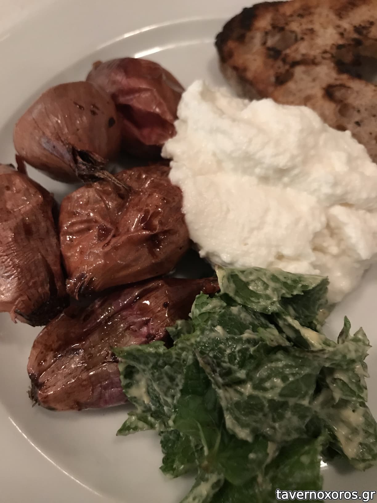 Shallots, κατσικίσιο τυρί και μέντα (οκ)