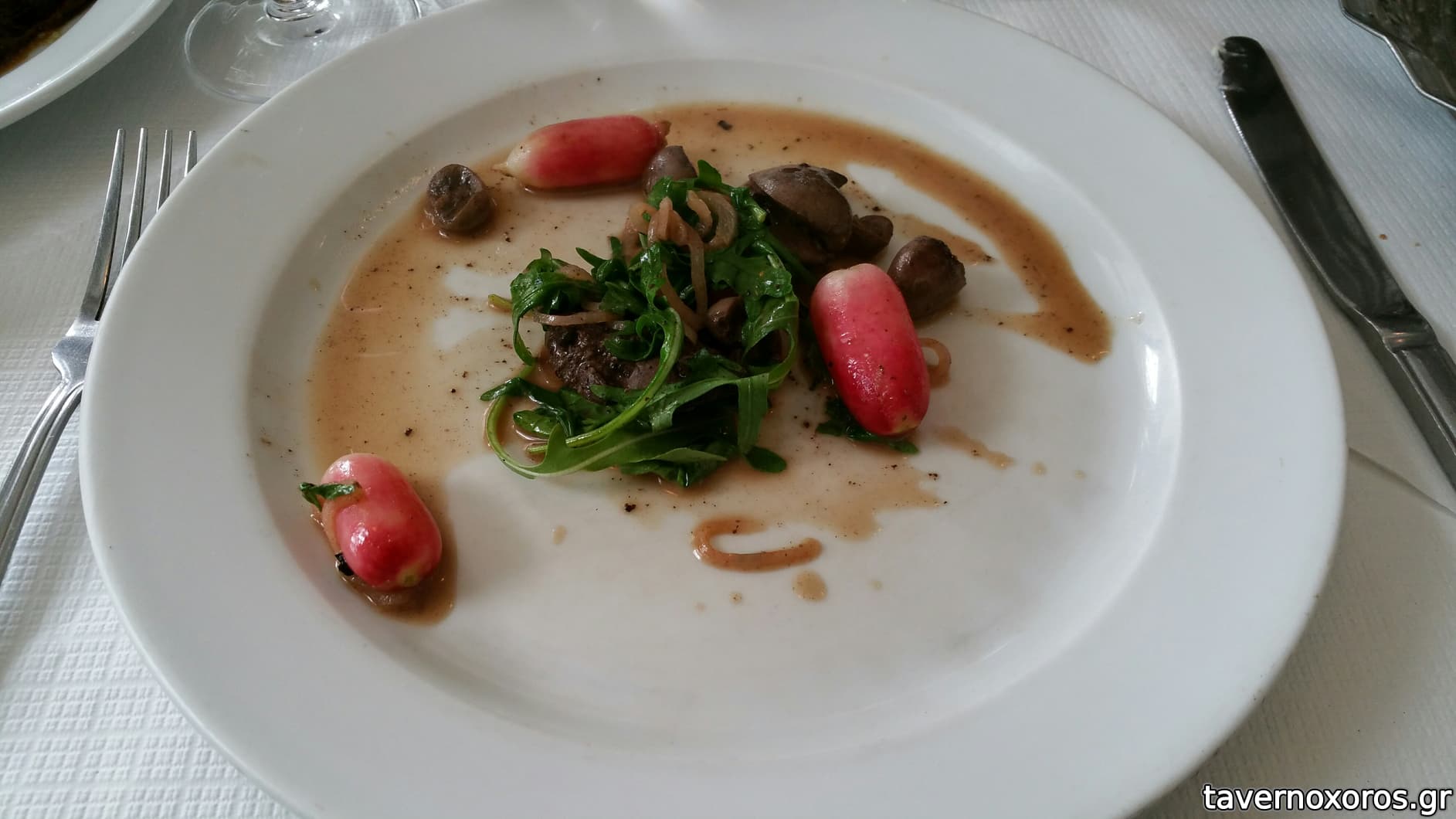 Πράγματι μεταξύ των άλλων δοκιμάσαμε εντόσθια και νεφρά κουνελιού, καρδιά μοσχαριού, πεντανόστιμα κρασάτα νεφρά πάνω σε χωριάτικο ψωμί κτλ. Όλα αυτά σε εστιατόριο με 1 αστέρι Michelin. Πολύ καλά και τα γλυκά τους καθώς έχουν ολόκληρο επιτελείο με pastry chef και bakers.