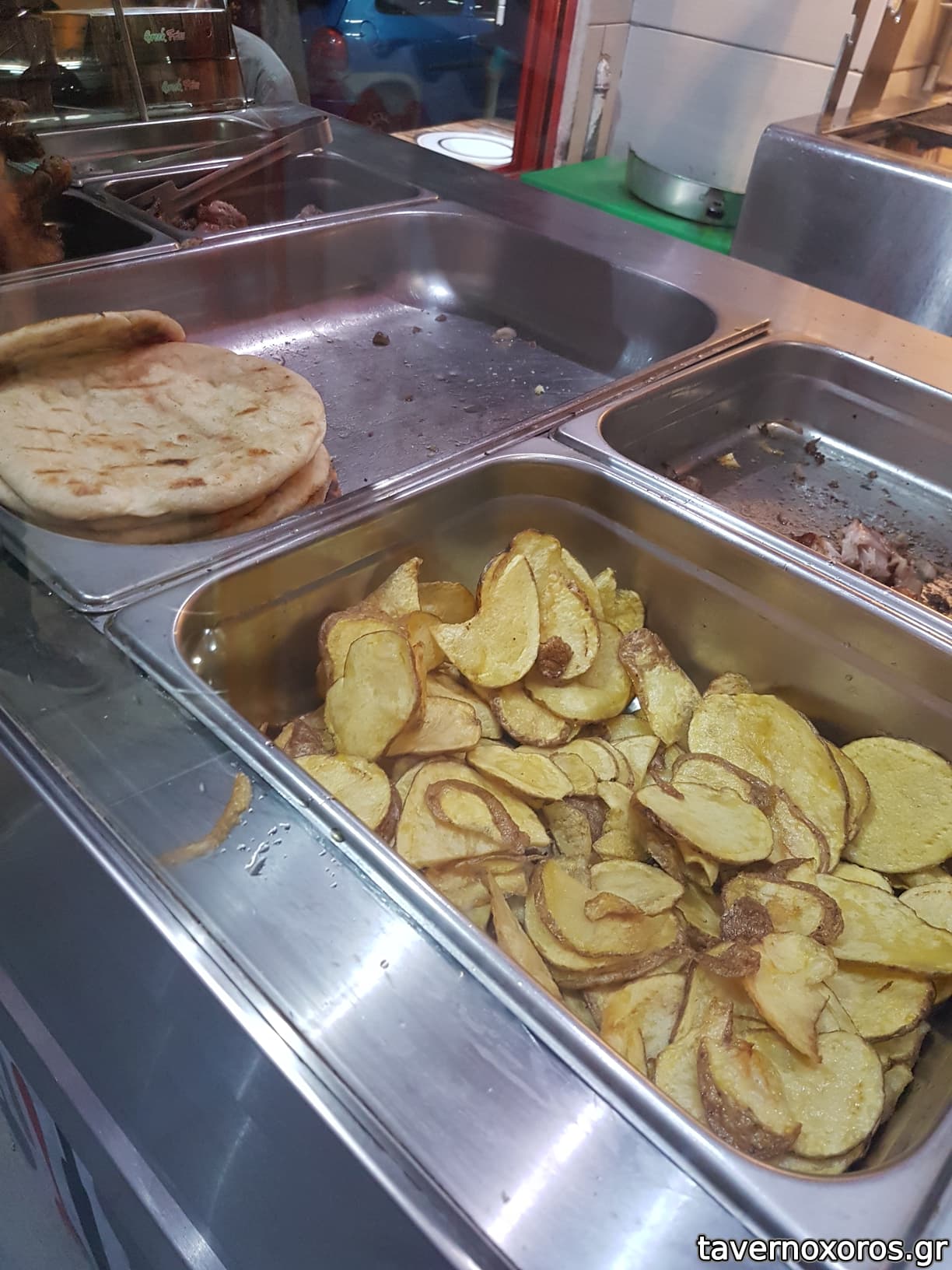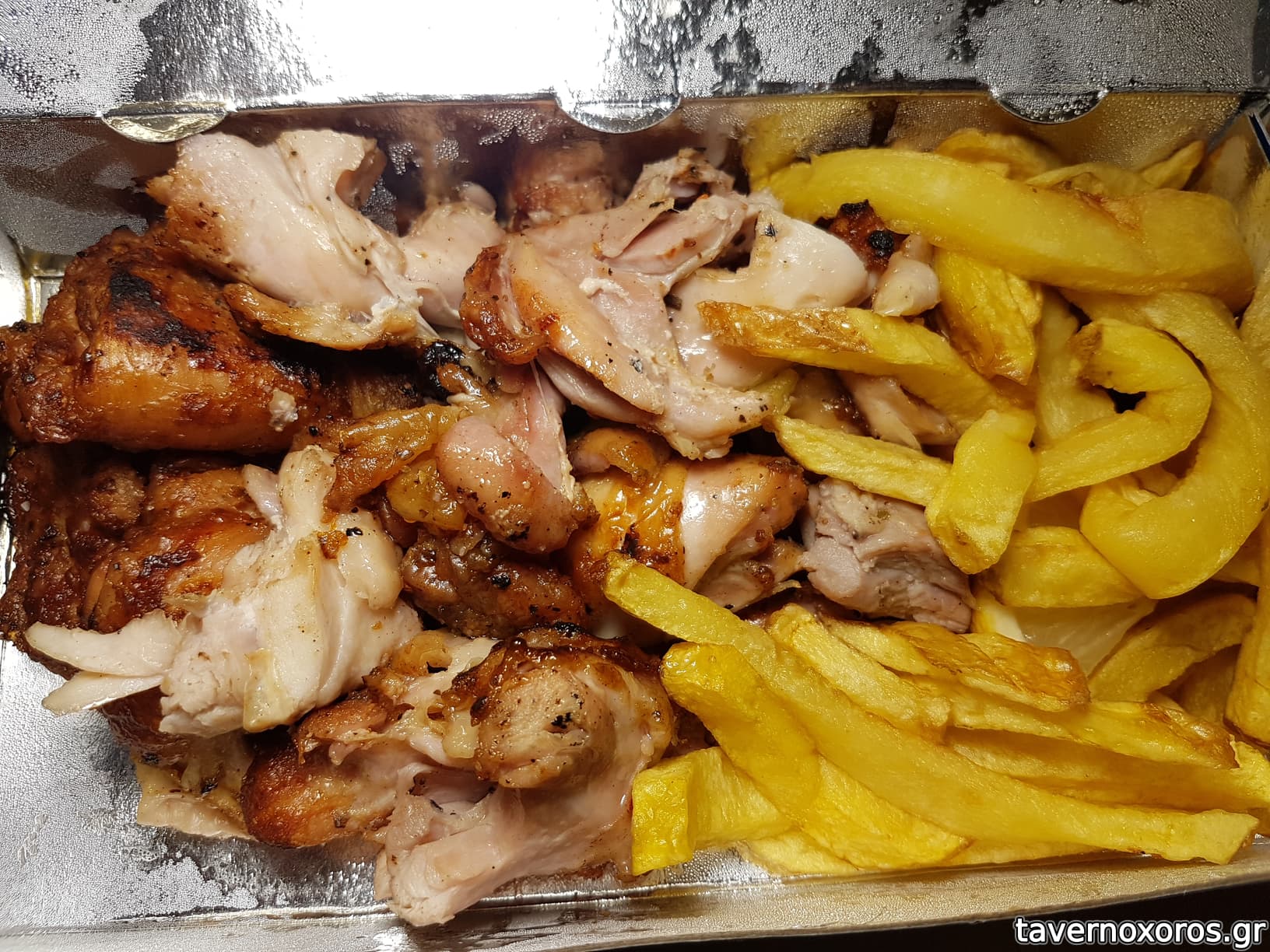 Κοντοσούβλι κοτόπουλο (αυτήν τη φορά πολύ μέτριο, και οι πατάτες σε κακό λάδι)