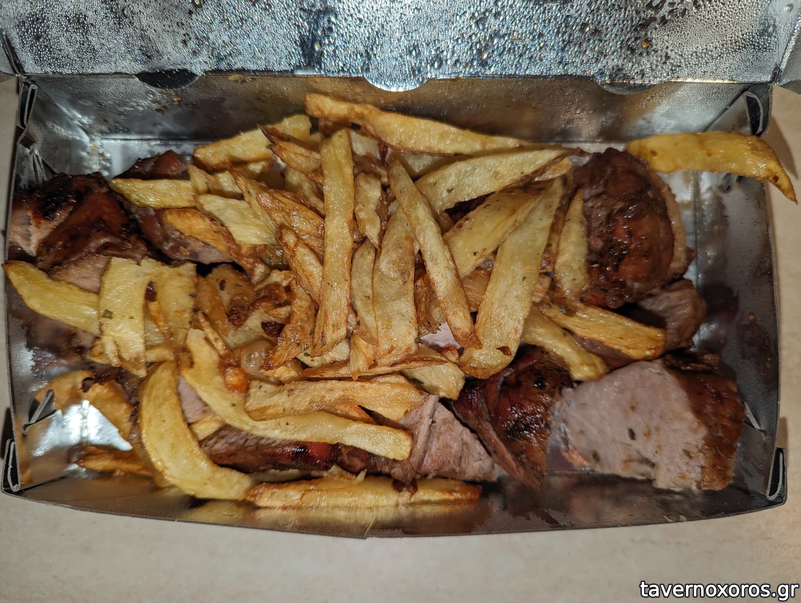 Πολύ ζουμερό και πολύ γευστικό. Βασικά μαριναρισμένο πολύ, πιθανώς σε γερή μαρινάδα με σκόρδο. Πολύ δυνατό!!