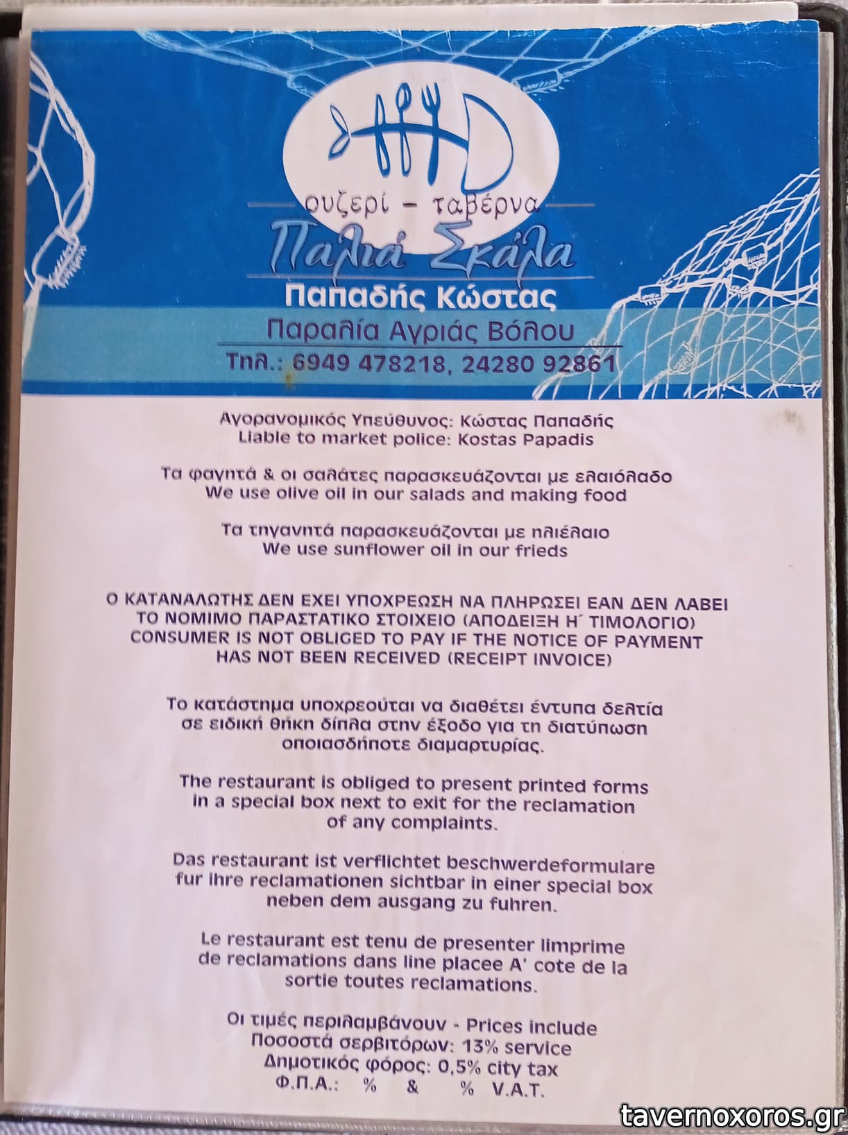 | Κατηγορία | Ψαροταβέρνα, Μεζεδοπωλείο |