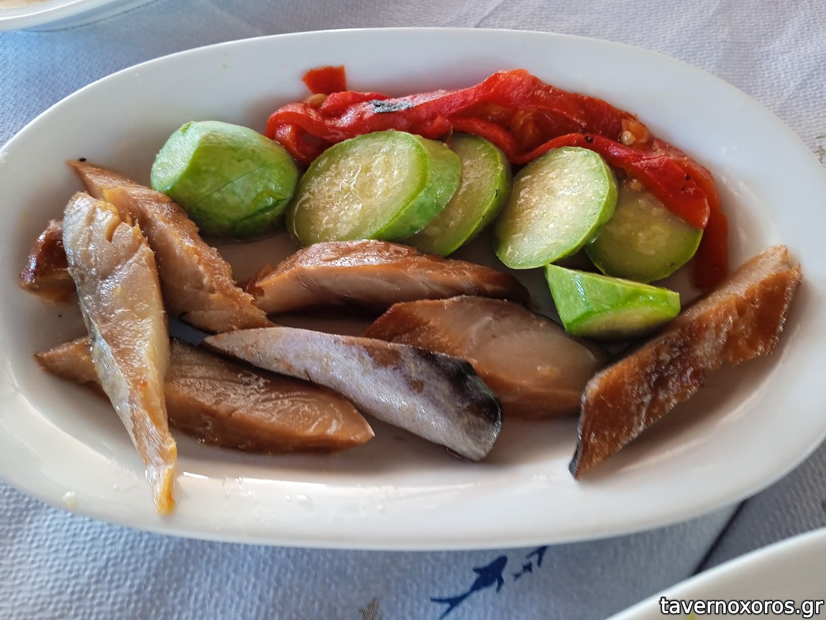 Με τα πρώτα 4 τσίπουρα ήρθαν, ένας εξαιρετικός ταραμάς, ένα υπέροχο χειροποίητο καπνιστό σκουμπρί, μια καυτερή, λιθρινάκια ψητά, λαχανικά ψητά με μπαλσάμικο, ένα πάρα πολύ ωραίο χταπόδι ψητό και μερικές πολύ νόστιμες γαρίδες