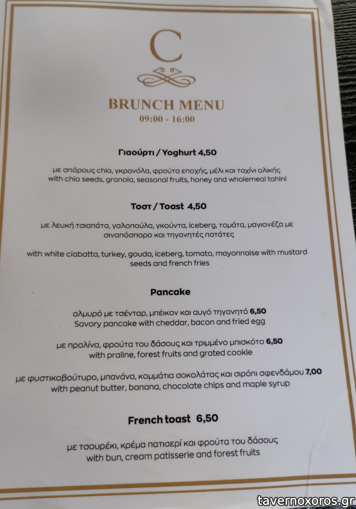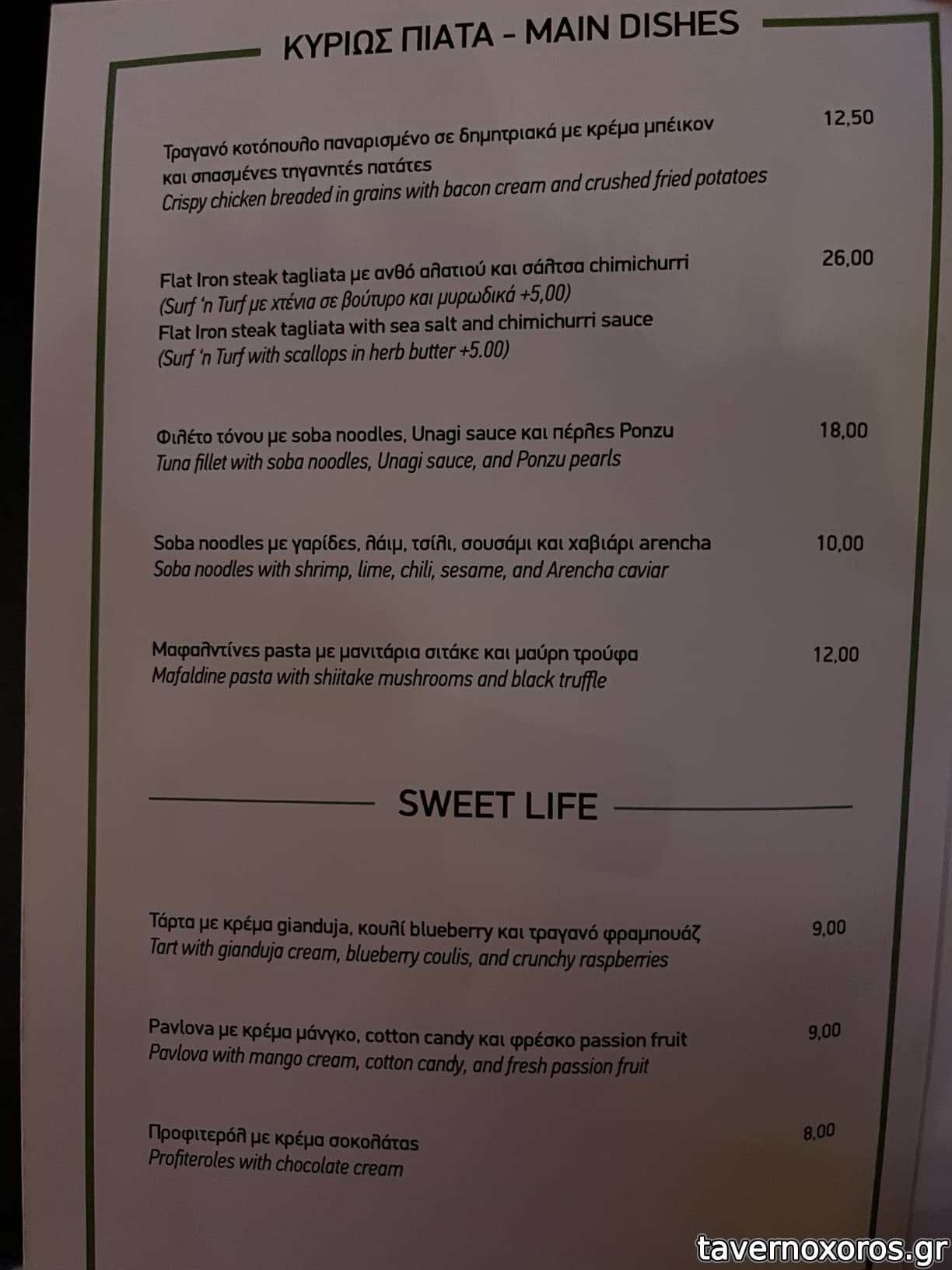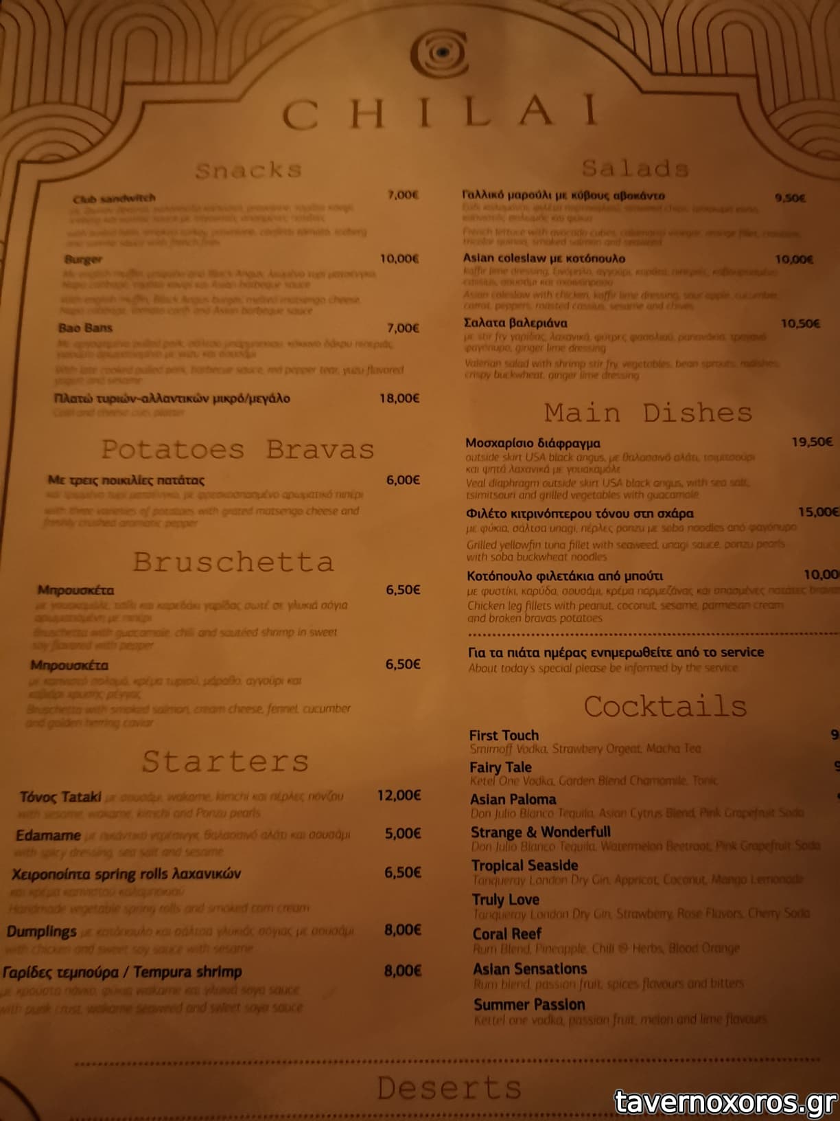 | Λέξεις κλειδιά | Τσιλάι, #cafe-bar, #cocktails, #snacks, #club sandwich, #sushi, #τοστ, #αυγά, #pancakes, #κοτόπουλο, #τόνος, #noodles, #σεβίτσε, #γαρίδες, #tacos, #bao bun, #dumplings, #gyoza, #ποικιλία τυριών, #ποικιλία αλλαντικών, #πάβλοβα, #προφιτερόλ |