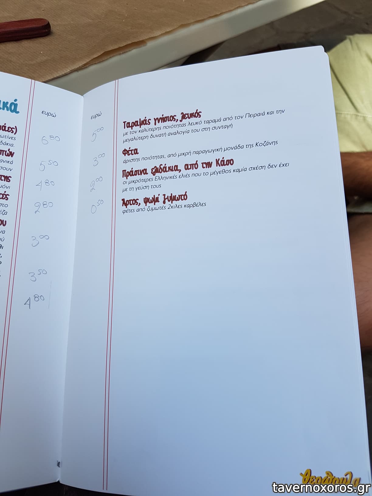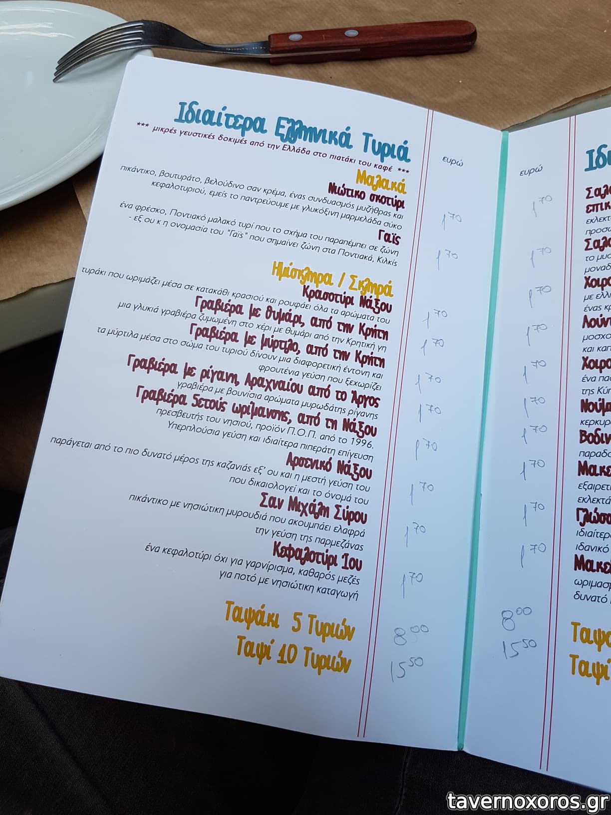 - Ο κατάλογος μεγαλούτσικος, συναντάς αρκετά κλασικά πιάτα των σύγχρονων μεζεδοπωλείων. Έχει κρεατικά και θαλασσινά, κάμποσα αλλαντικά και τυριά, και καλή ποικιλία από αποστάγματα. Οι μερίδες είναι λίγο πιο μικρές από το μέσο όρο, γιατί λειτουργεί σαν μεζεδοπωλείο. Τα όσα δοκίμασα ήταν όλα καλά, 1-2 πιάτα μόνο στην κατηγορία του "