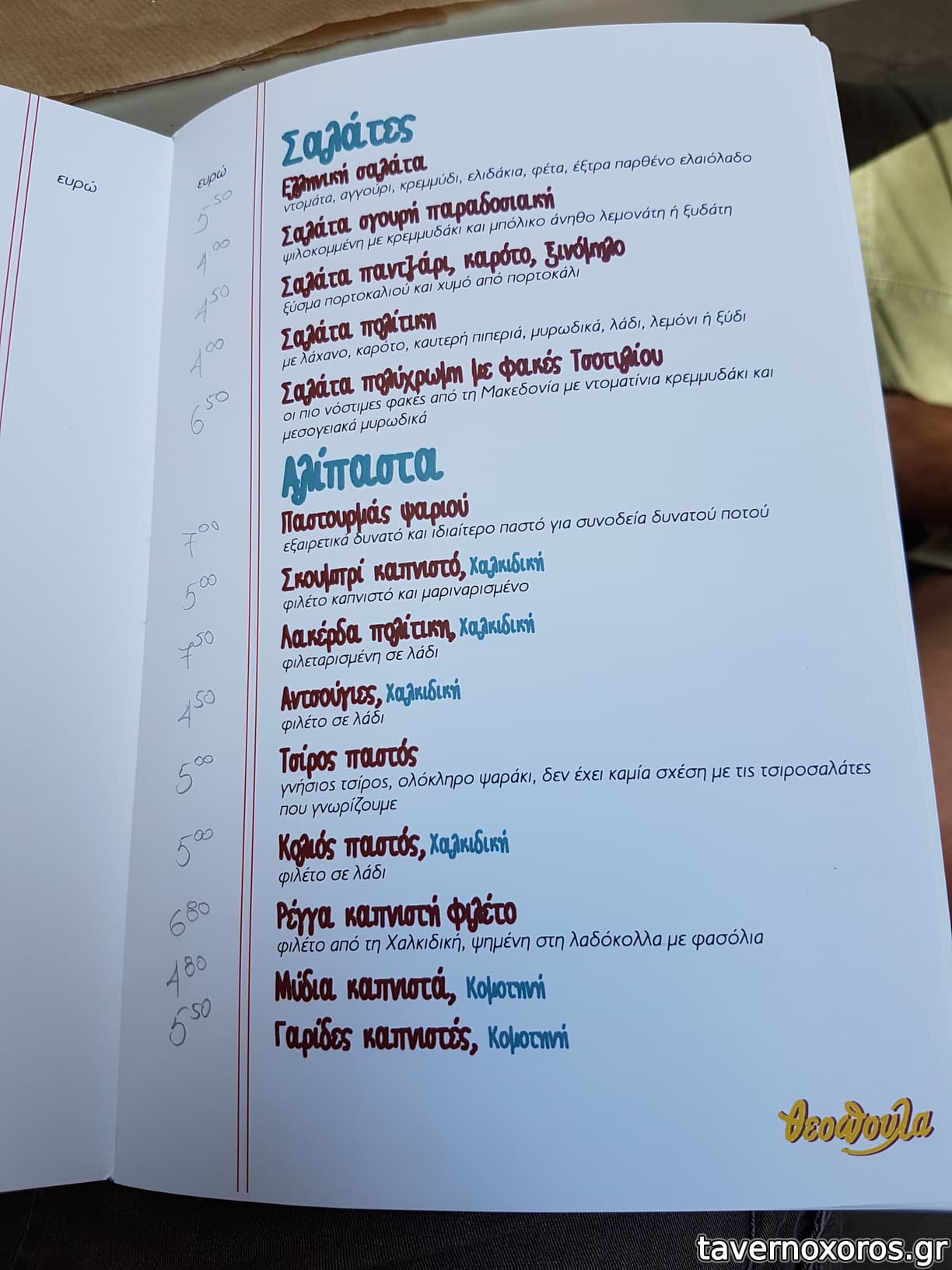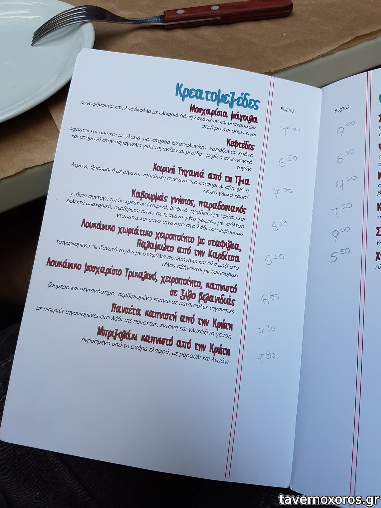 απλώς οκ" και κάποια πολύ καλά. Ξεχώρισα το λουκάνικο με σταφύλια. Το τσίπουρο άνευ πολύ καλό, το τσίπουρο με γλυκάνισο ένα κλικ πιο κάτω. Το φαγητό στο σύνολο αξίζει. - Τιμές δε θυμάμαι.
