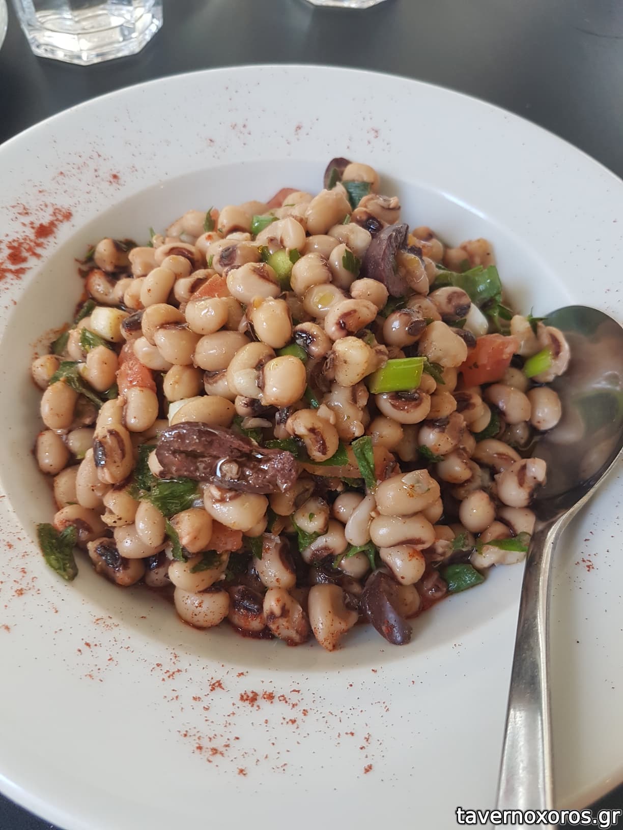 "Μαυρομάτικα φασόλια πιάζ με ντομάτα, ελιές και πάπρικα" (απλώς οκ, του έλειπε η οξύτητα)