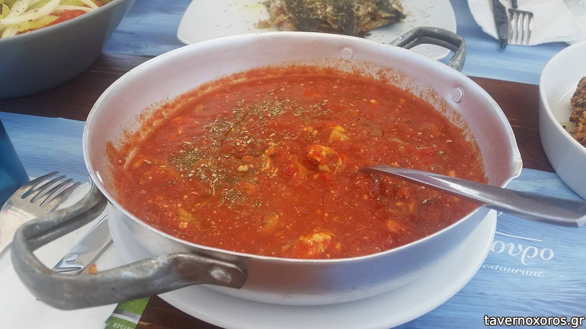 Στο δια ταύτα τώρα, η κουζίνα του έχει κυρίως θαλασσινά και 2-3 πιάτα κρεατικών. Πήραμε μια μακαρονάδα θαλασσινών (αρκετά καλή και τα ζυμαρικά βρασμένα όπως πρέπει), μύδια αχνιστά (πολύ καλά, με το ζουμάκι τους), πατάτες τηγανητές (δικές του, καλές), κολοκυθάκια τηγανιτά (δεν μου άρεσαν, το κουρκούτι κράτησε πολύ λάδι και ήταν πολύ λεπτά κομμένα)και μια σαλάτα (ντάκος, οκ). Ήπιαμε και δύο μισόλιτρα ημίγκλυκο και πληρώσαμε 45 ευρώ.