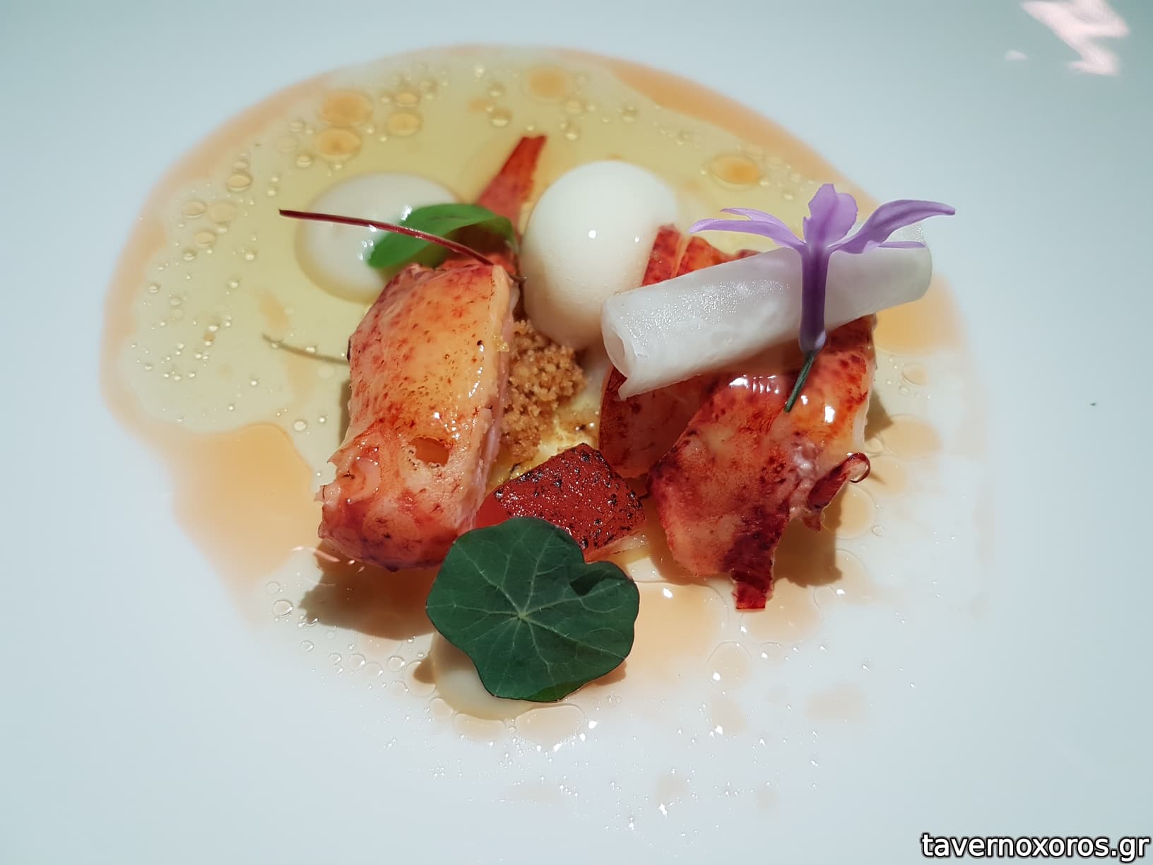 Degustation 6/14: "Αστακός / Κολράμπι, ζωμός τομάτας, καρπούζι, λουΐζα, φυστικοβούτυρο" (αδιάφορο)