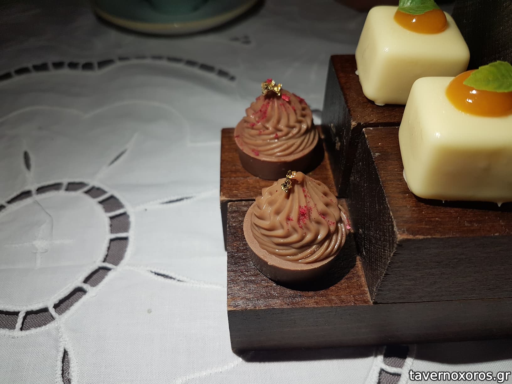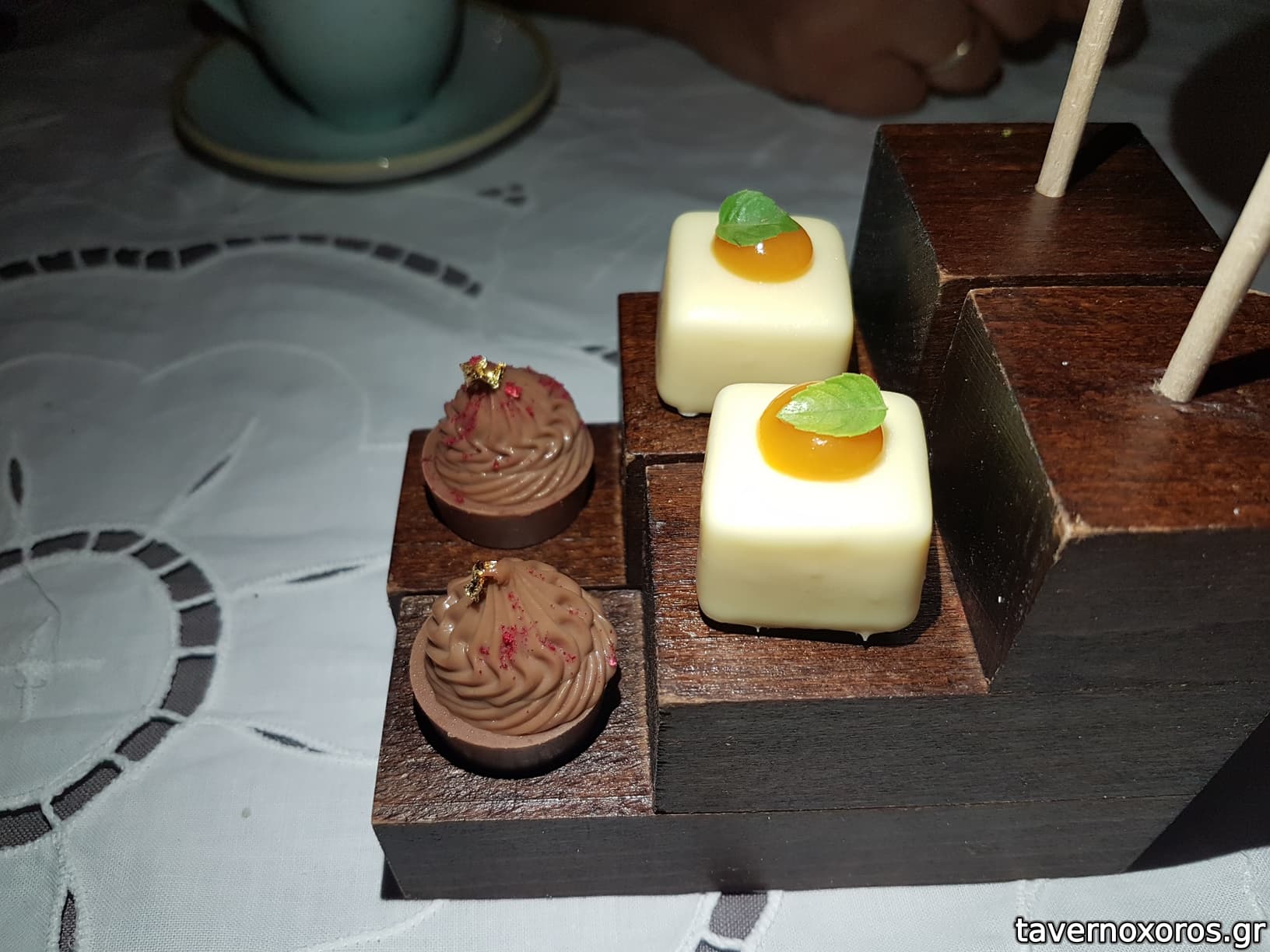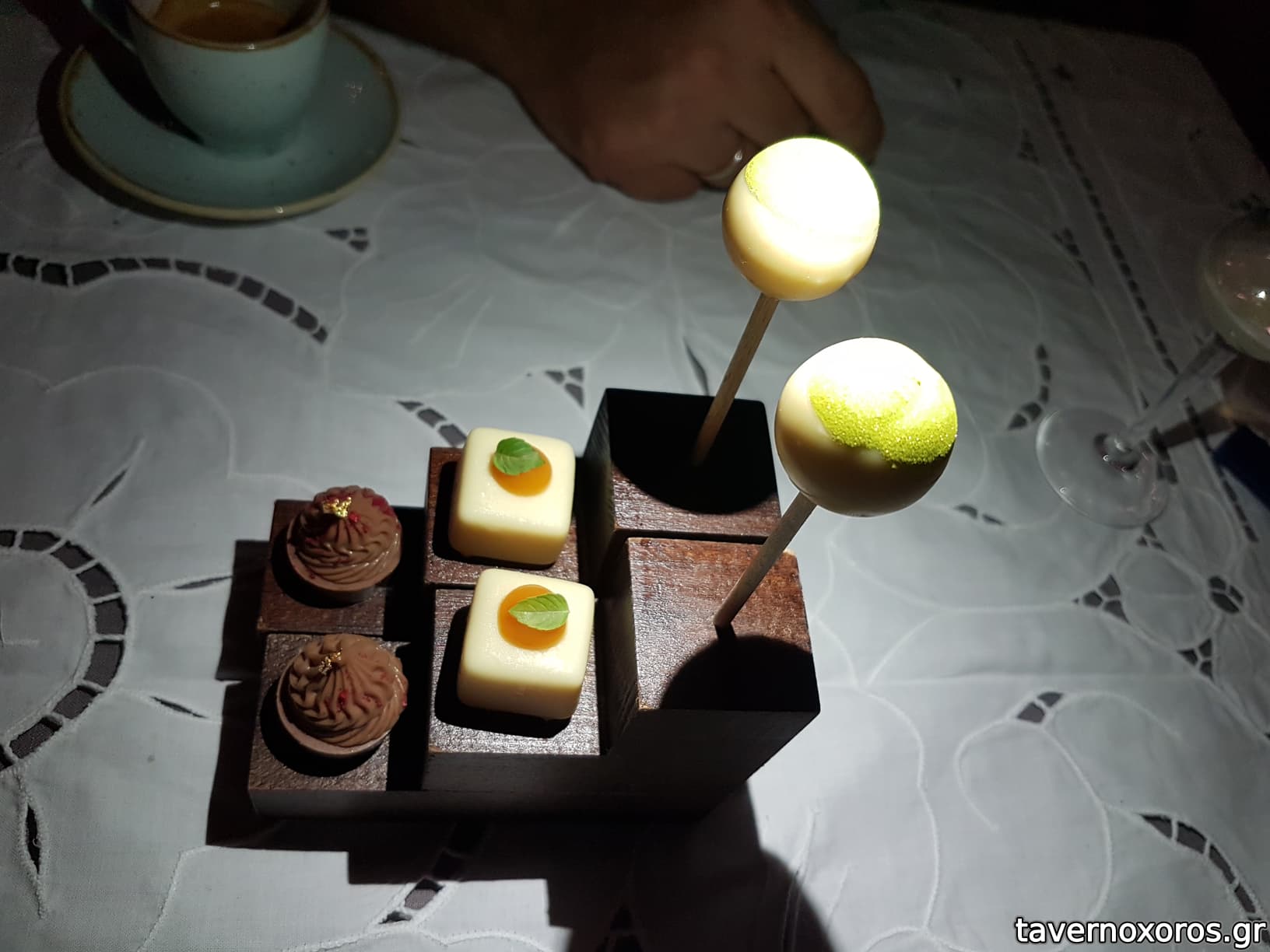 Degustation 13/14: "Σοκολάτα Ivoire / Βασιλικός, γκρέιπφρουτ, φιστίκι Αιγίνης, wasabi" (καλό)