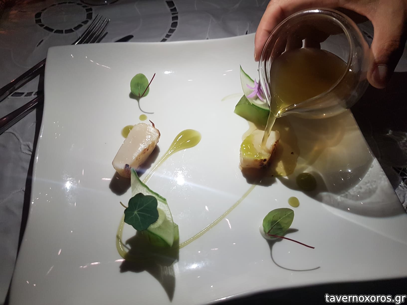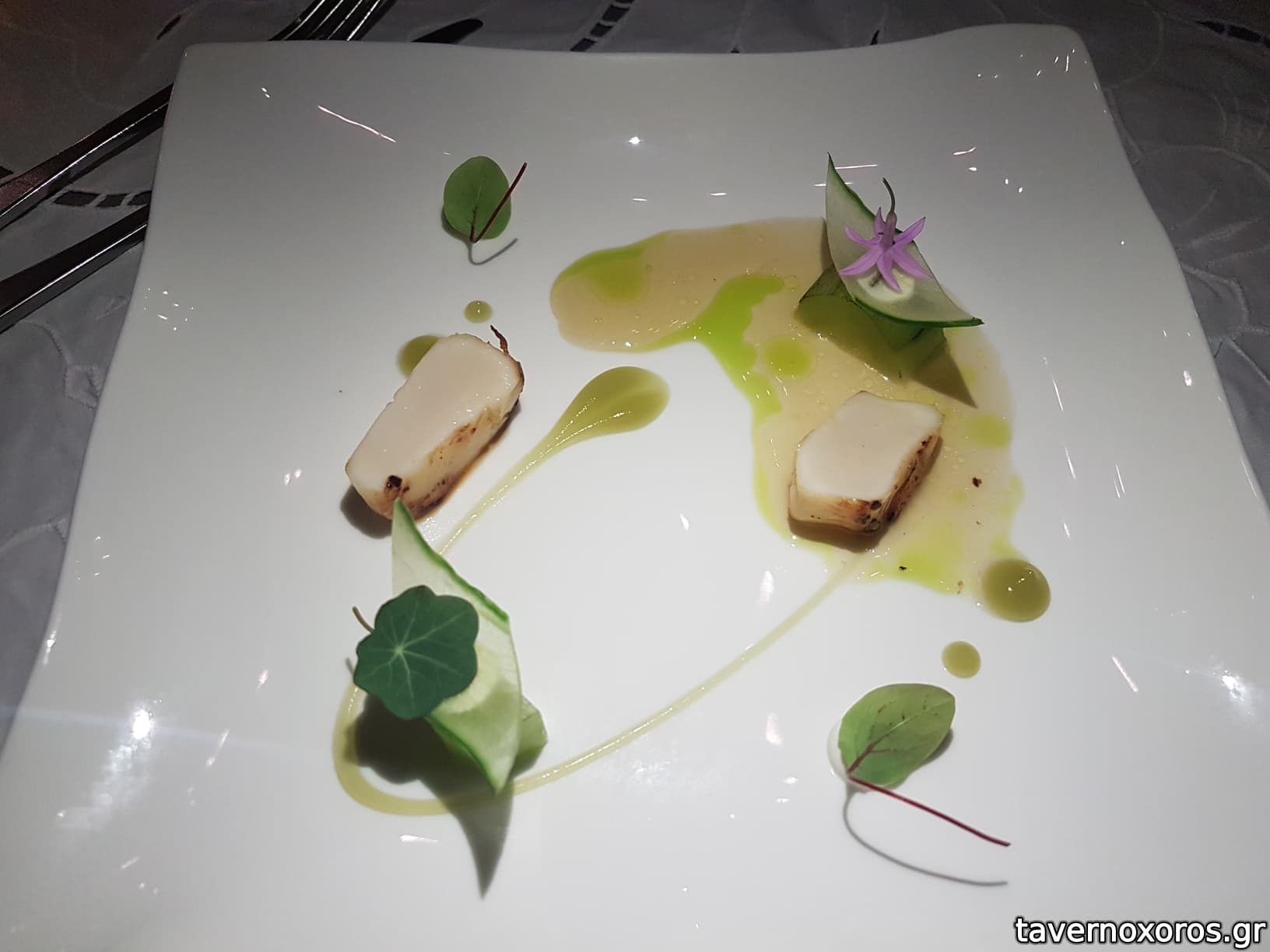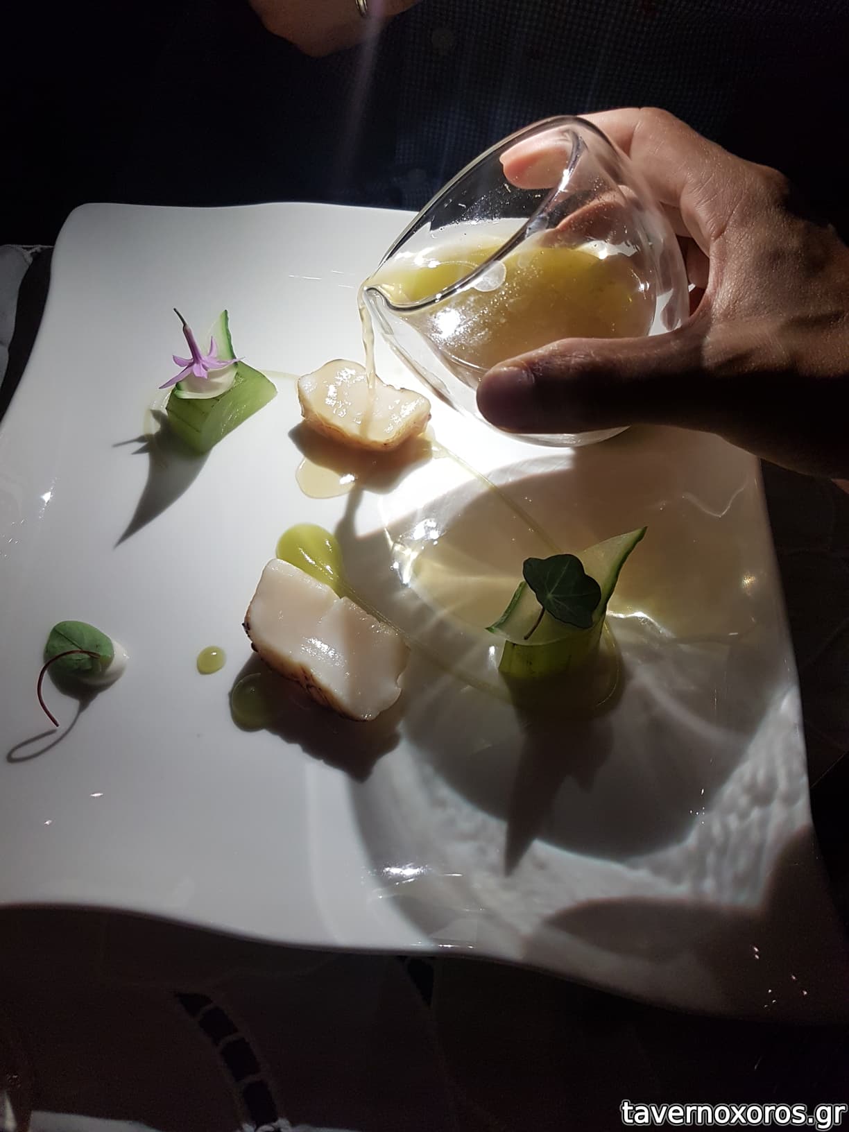 Degustation 5/14: "Καπνιστά χτένια / Αγγούρι, χαμομήλι, vadouvan" (οκ)