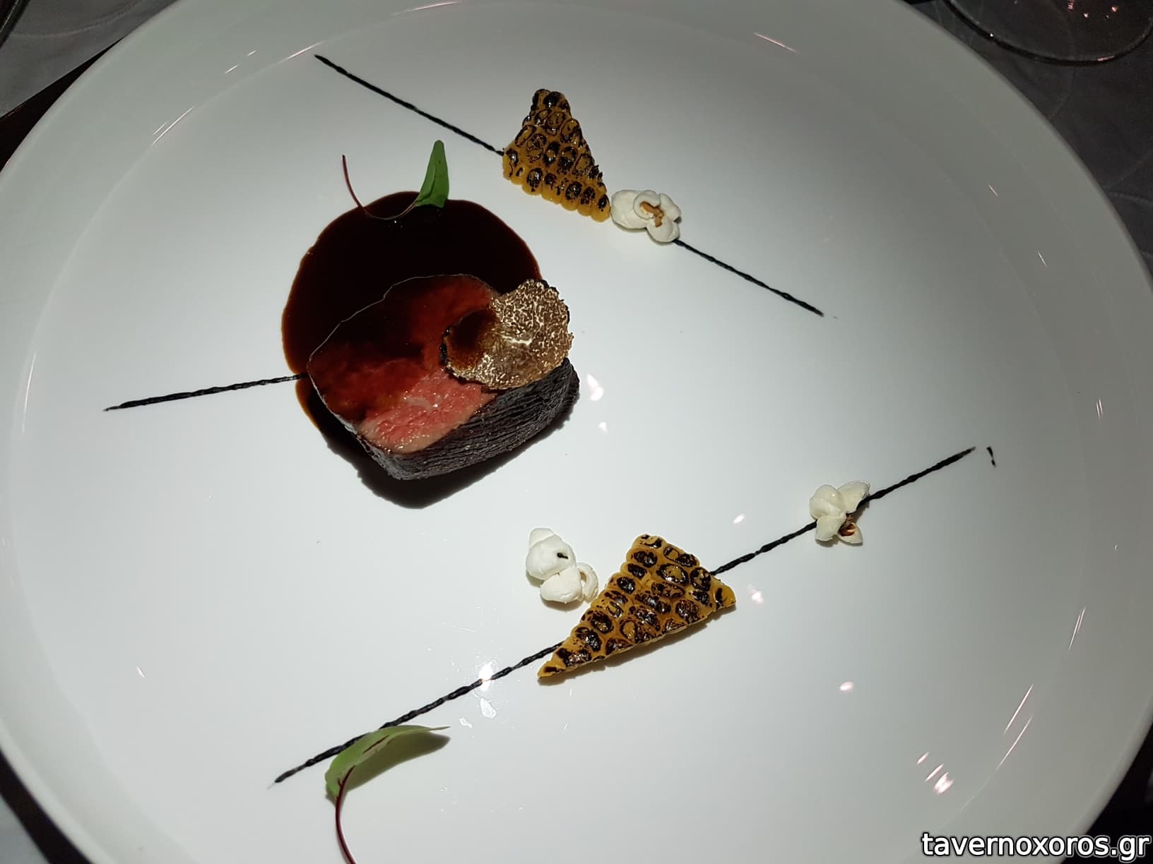 Degustation 10/14: "Μοσχαράκι wagyu Αυστραλίας / Καλαμπόκι, miso, ποπ-κορν, τρούφα" (καλούτσικο, το μοσχαράκι άνοστο, αλλά τα υπόλοιπα καλά)