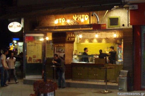 Δοκίμασα σαντουιτσάκι με πίτα και λουκάνικο.Η πίτα πολύ νόστιμη (και όχι βουτηγμένη στο λάδι),πατάτες επίσης πολύ καλές,το λουκάνικο όμως μέτριο.Τιμή : 2,40 για ένα σάντουιτς μικροσκοπικό που δεν σε χορταίνει με τίποτα.Είχε αρκετό κόσμο ίσως λόγω του ότι ήταν απ τα ελάχιστα που ήταν ανοιχτό στις 4 το ξημέρωμα.Θα το ξανατιμήσω αν τέτοια ώρα πεινάσω πολύ και δεν υπάρχει άλλη εναλλακτική.