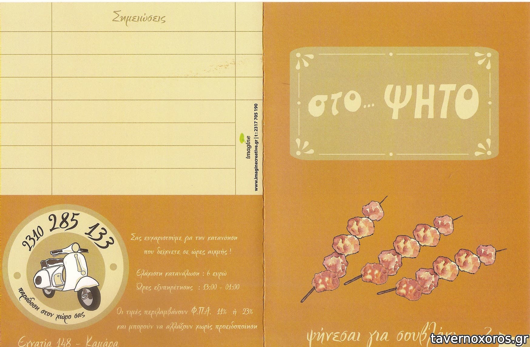 συνεχίζω και το τιμάω, το γεγονός ότι πολλά πράγματα δεν τα έχει διαθέσιμα (χοιρινο σουβλάκι) και το ψήνει εκείνη την ώρα ειναι ένα μεγάλο συν για εμένα + τις επιλογές για λάχανο και διαφορα μπιλικια μπλικιακα.
