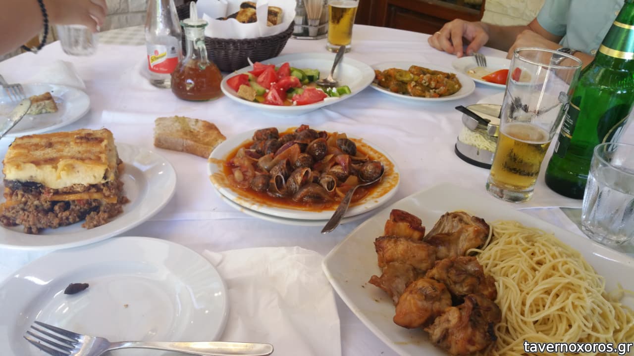 Οτι δοκιμάσαμε (βλέπε φωτό) ήταν από πολύ καλό εως καταπληκτικό. Ειδικά οι χοχλιοι(σαλιγκάρια) με την σάλτσα ήταν μακράν ότι νοστιμότερο σαλιγκάρι έχει φάει στην ζωή μου, τεραστια μεριδάρα μόνο 5Ε. Απο τα υπόλοιπα πιάτα θα ξεχώρια το μπιφτέκι, μιλάμε για 2 μπιφτεκάρες γεμιστές με πιπεριές και τυρί, ζουμερές, άντε χορταίνεις με τιμή 5.