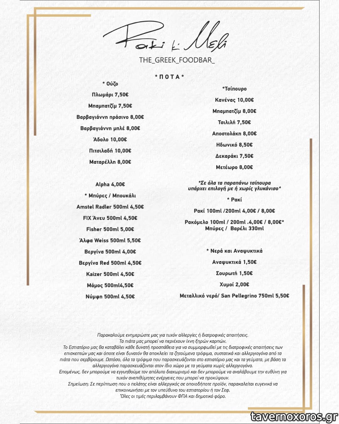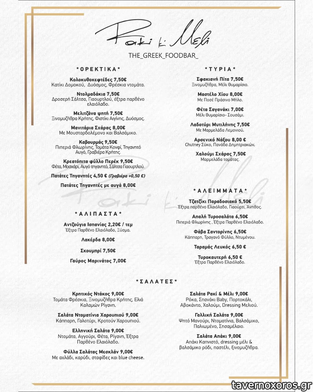 | Λέξεις κλειδιά | Raki kai Meli, Ρακή και Μέλι, #κολοκυθοκεφτέδες, #λαδοτύρι, #ντολμαδάκια, #χαλούμι, #μανιτάρια, #καβουρμάς, #σφακιανή πίτα, #μαστέλο, #περέκ, #αρσενικό, #κρεατόπιτα, #φάβα, #ντάκος, #απάκι, #γαύρος μαρινάτος, #ζυμαρικά, #ριζότο, #ραβιόλι, #καραβίδες, #σεβίτσε, #γαριδομακαρονάδα, #σουβλάκι, #σουτζουκάκια, #μπιφτέκι, #τηγανιά, #συκώτι, #χοιρινή, #παϊδάκια, #ψαρονέφρι, #πανσετομπριζόλα, #μοσχαρίσια γάλακτος, #ωρίμανσης, #θράψαλα, #μπακαλιάρος, #μύδια, #χταπόδι, #γαρίδες, #σολομός |