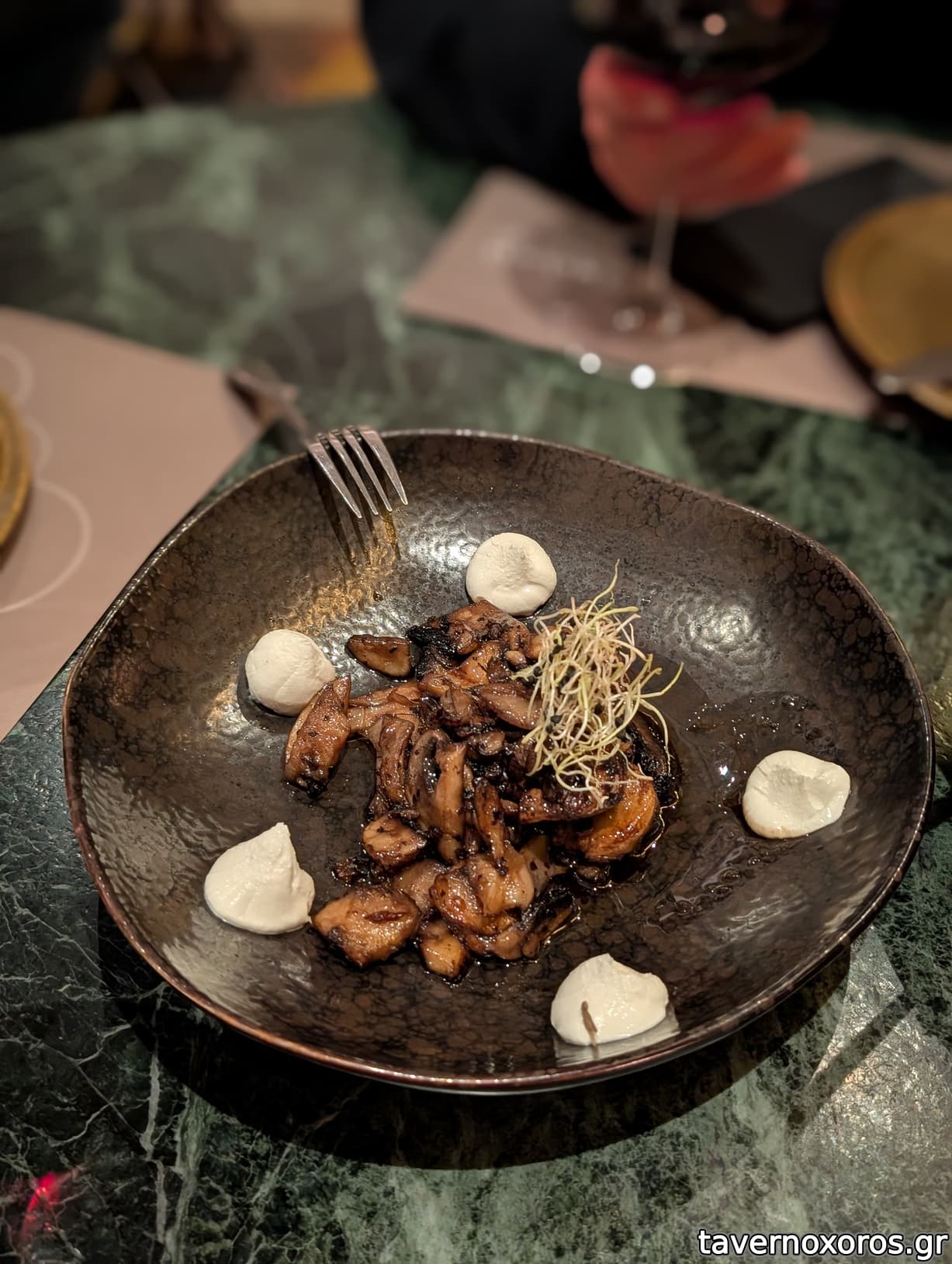 Αμανίτοι με ανθόγαλο και οξύμελο στο τηγάνι (καλό, αν και μικρή μερίδα για την τιμή)