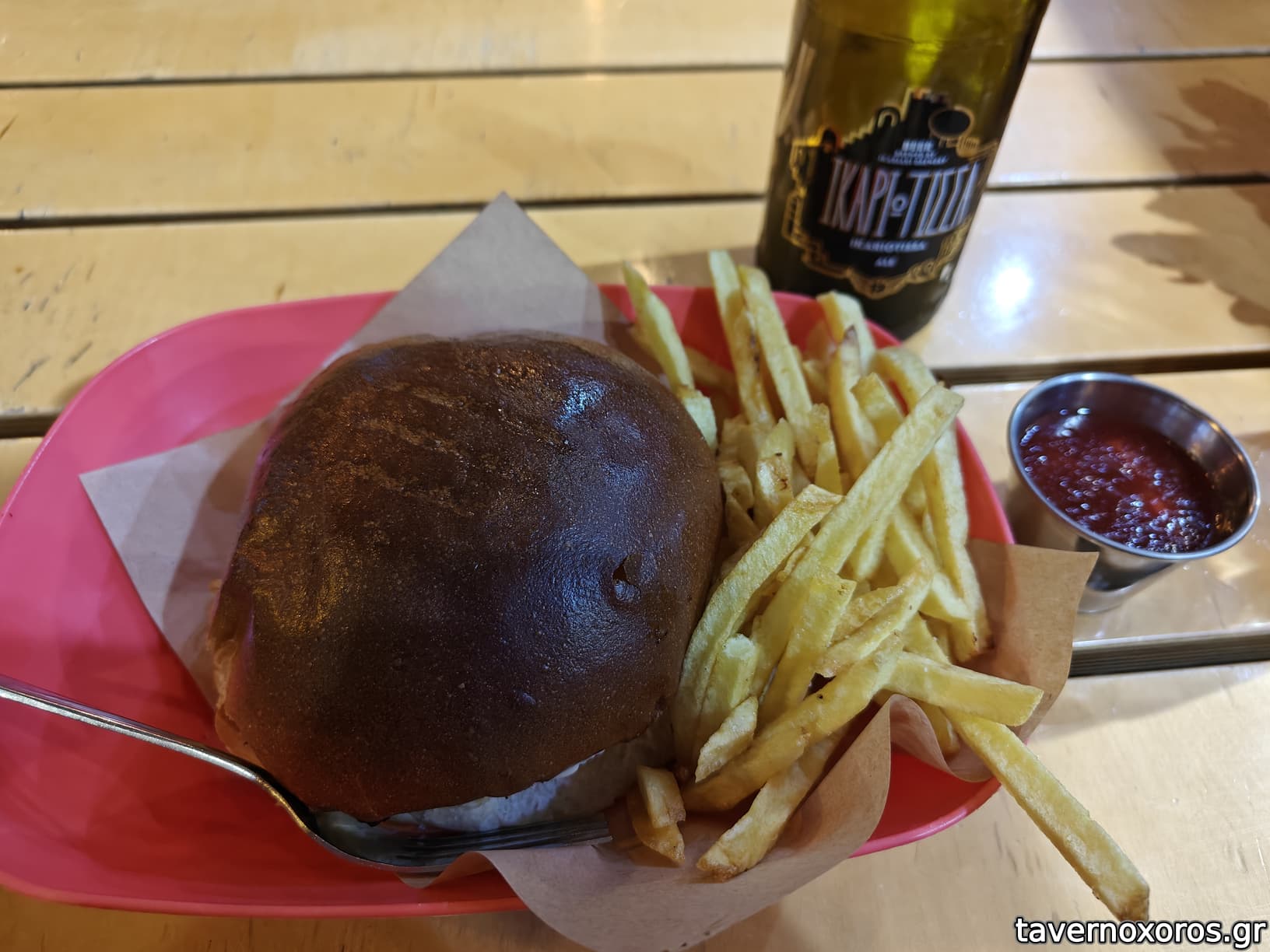Πήρα ένα "απλό" burger με πατάτες και μια μπύρα Ικαριώτισσα.