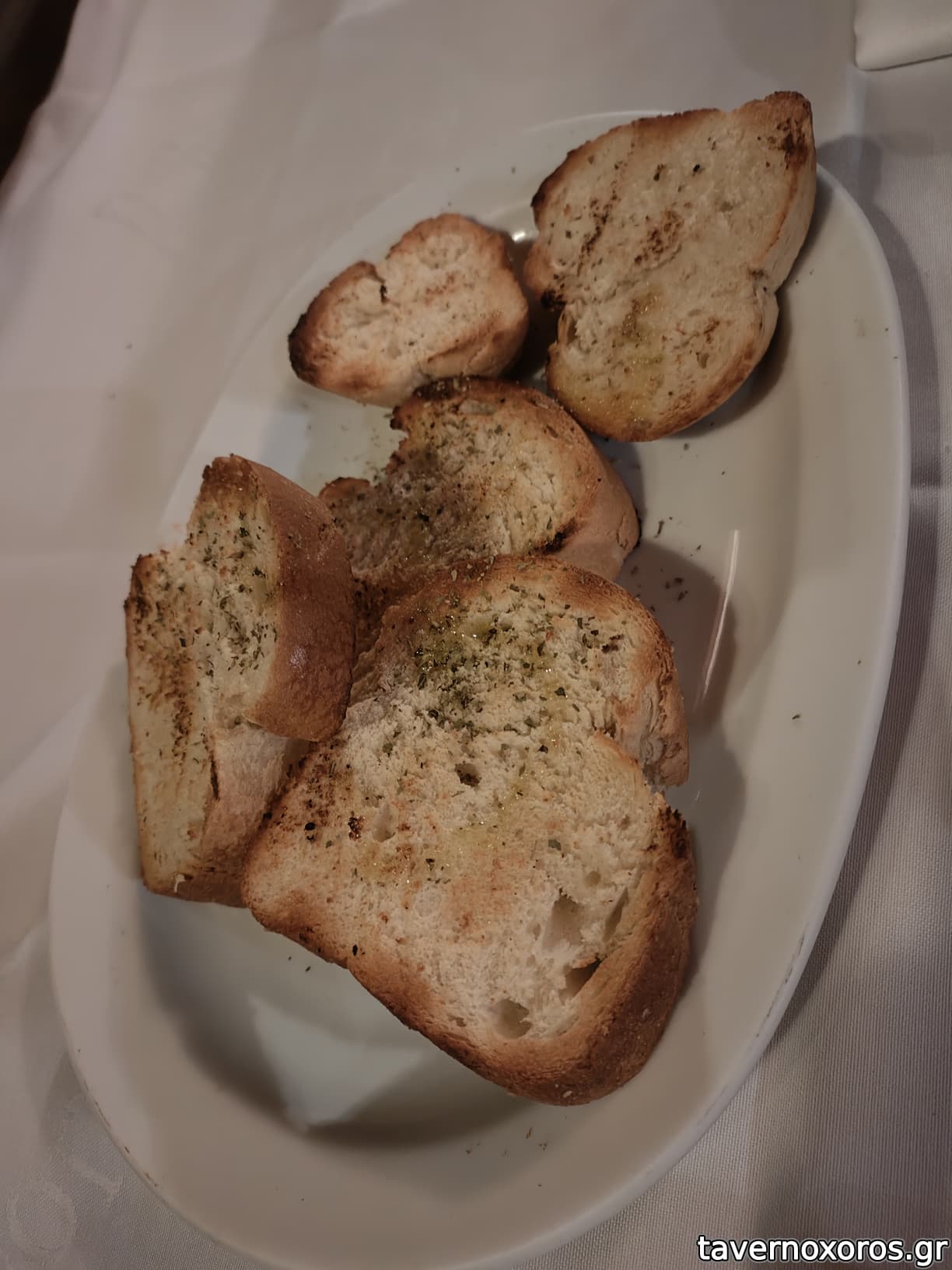 8-Ψωμί , καλοψημένο , πασπαλισμένο με ελαιόλαδο και αλατορίγανη , εξαιρετικό και άφθονο.
