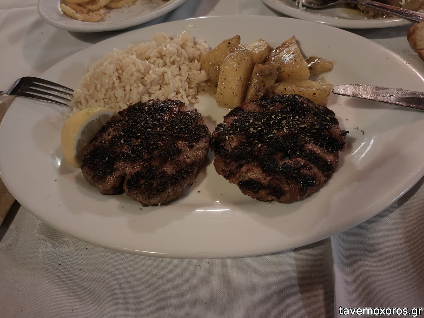 Να σημειώσω στον φίλο Πάνο ότι ζητήσαμε αρχικά να μην είναι ρύζι η γαρνιτούρα, αλλά ο σερβιτόρος είπε ότι τους βραχυκυκλώνει και αργούν τα πιάτα. Τελικά όμως το ρύζι δεν είναι τόσο άσχημο, με ζουμάκι τρώγεται μια χαρά, είπαν όλοι..