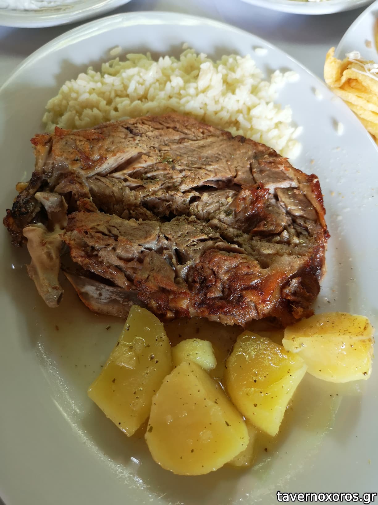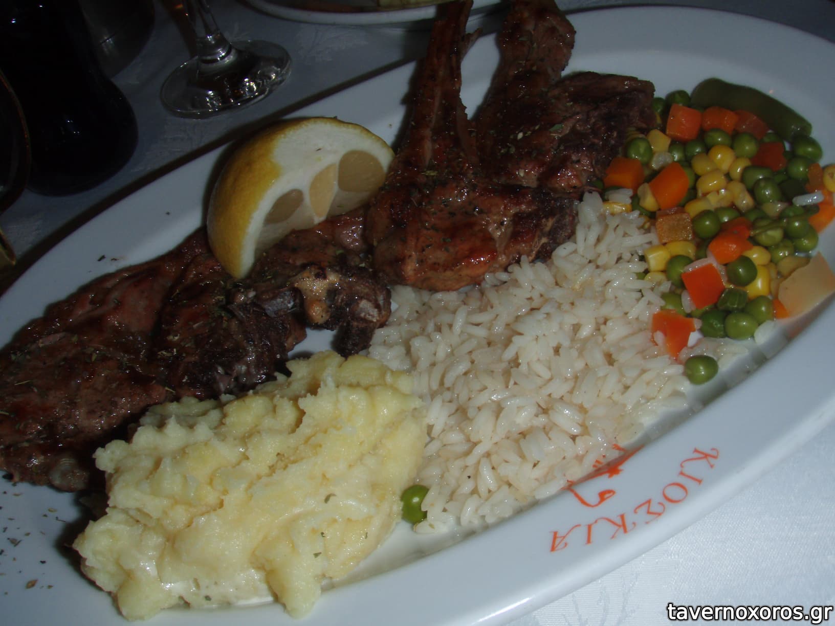 Οι γαρνιτούρες περιελάμβαναν πατάτες φούρνου -πολύ καλές- και ρύζι-άγευστο και αρκετά σκληρό- .